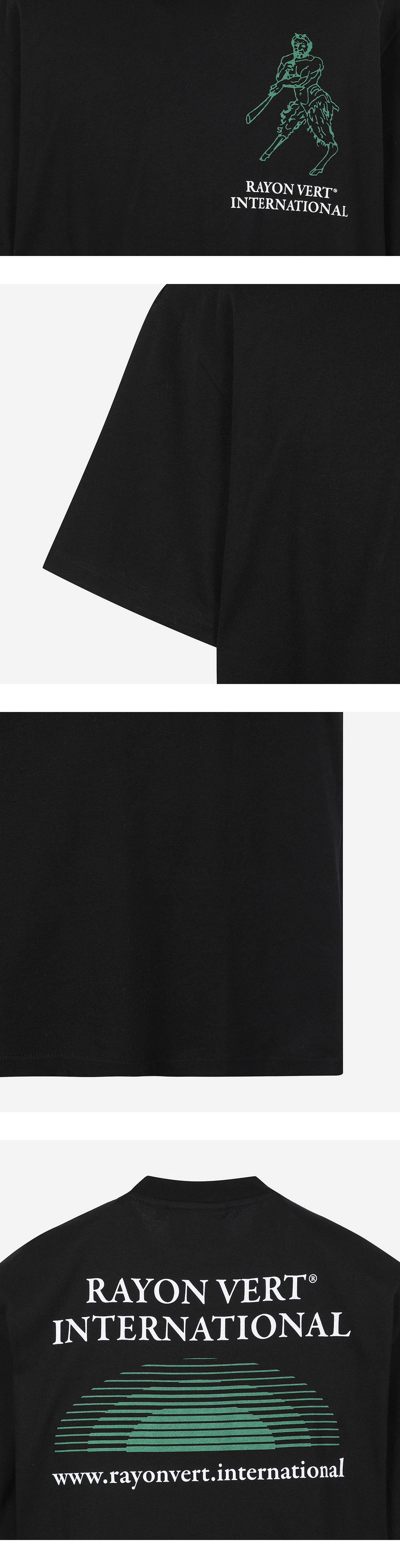 좌측 가슴 및 후면의 그래픽이 돋보이는, 블랙 컬러의 릴렉스 핏 티셔츠 - 부드러우면서도 내구성 있는 헤비코튼으로 제작되어 편안한 착용감 - 그리스 신화의 반인반수, 사티로스에서 영감을 받은 좌측 가슴 그래픽 - 소매 및 밑단 가로 방향의 싱글 스티치 마감