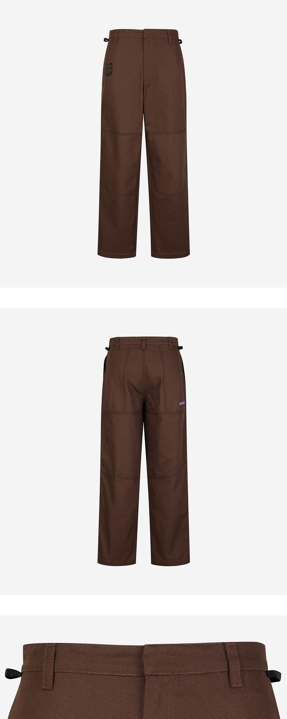 헤비웨이트 코튼을 사용한 워크웨어 무드의 릴렉스 핏 팬츠 - 편안한 착용감과 뛰어난 내구성 - 전면 우측 포켓의 프린팅 디테일 - 우측 허벅지 뒷면의 시그니처 라벨 디테일 - 전면 지퍼 포켓 2개, 후면 포켓 2개