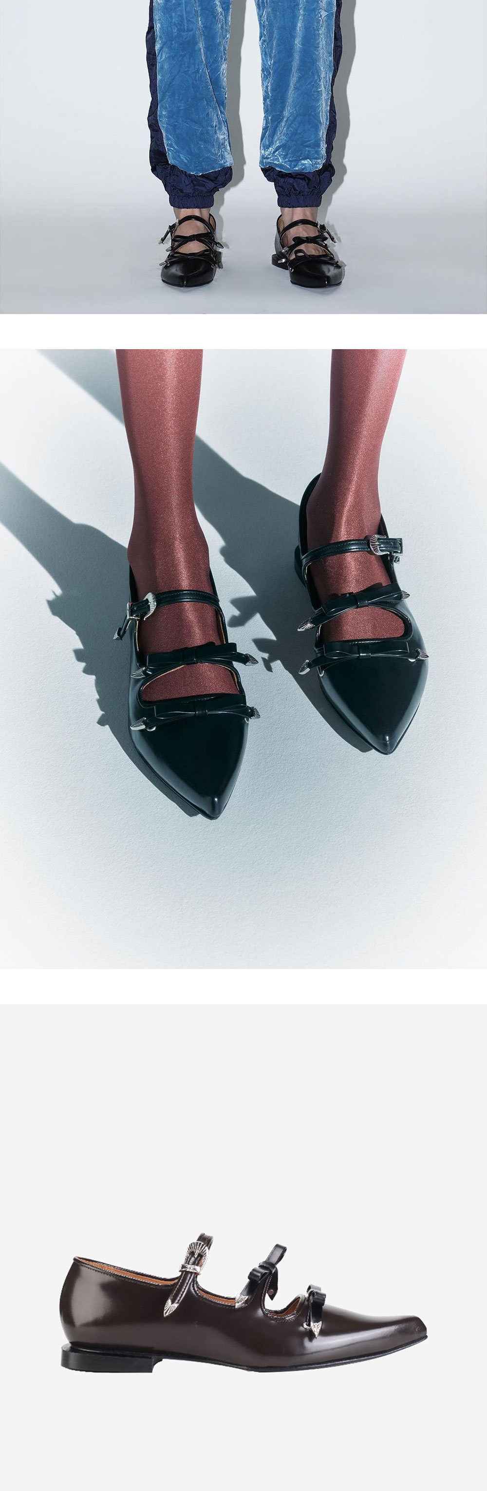 웨스턴 디테일의 버클로 토가만의 무드를 즐길 수 있는 플랫슈즈입니다. - 웨스턴 무드의 버클과 리본 2개 - 은은한 광택 *상세이미지의 모델이 착용하고 있는 상품의 경우, 동일한 제품의 다른 컬러 상품입니다.