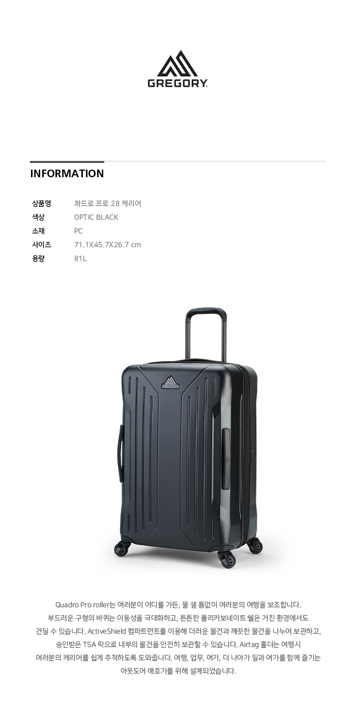 그레고리 콰드로 프로 28 캐리어 옵틱 블랙