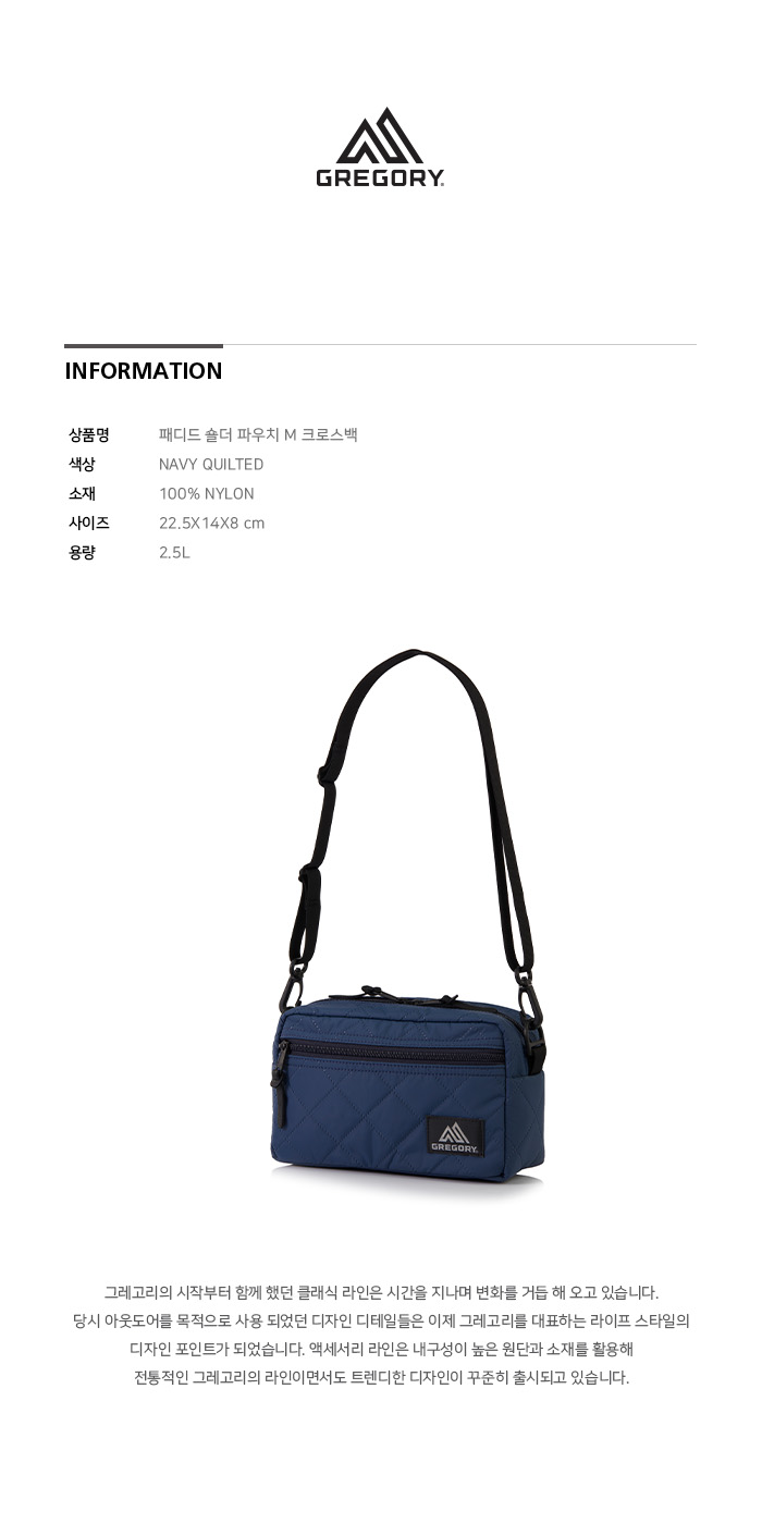 그레고리 패디드 숄더 파우치 M 네이비 퀼티드