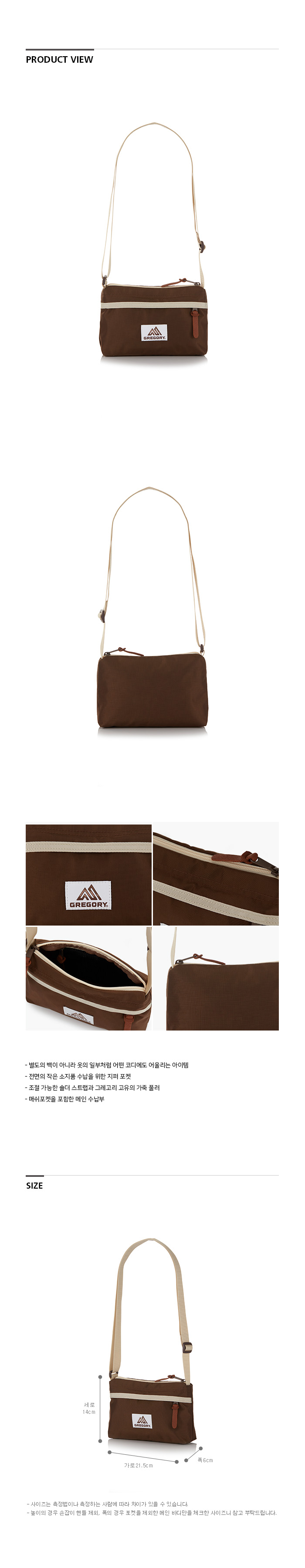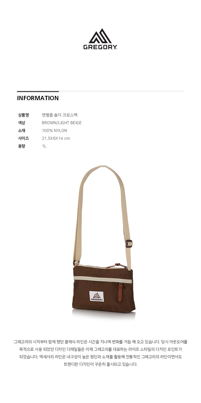 그레고리 엔벨롭 숄더백 브라운 라이트 베이지