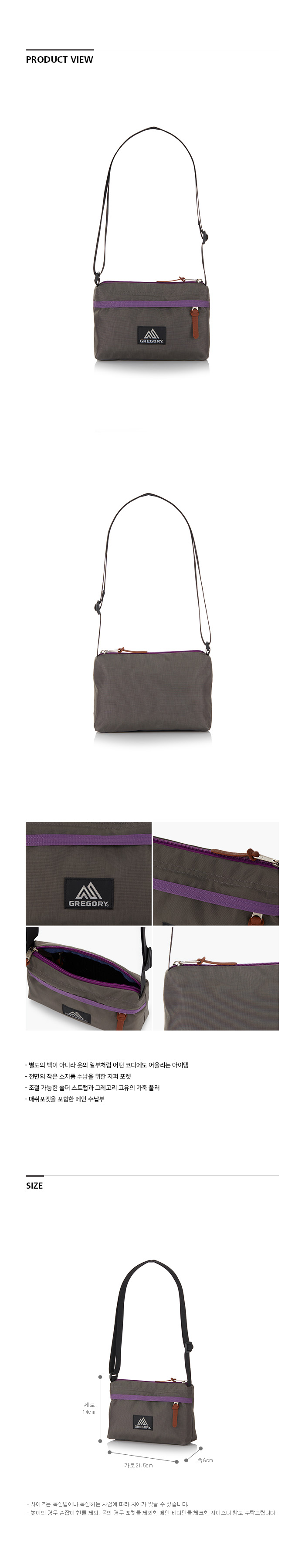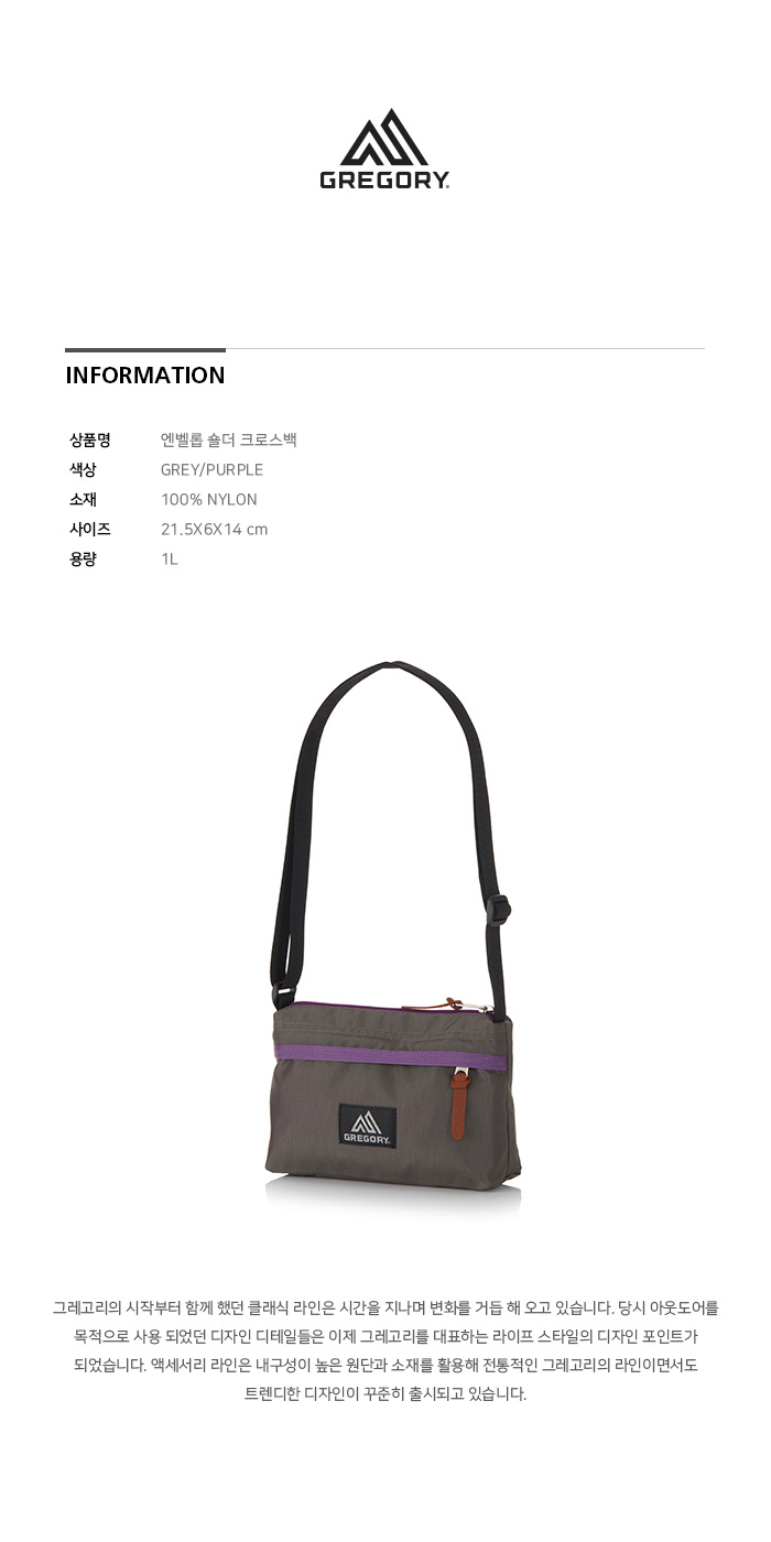 그레고리 엔벨롭 숄더백 그레이 퍼플