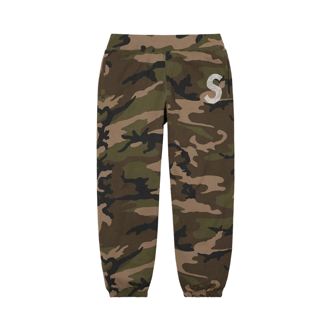 슈프림 스와로브스키 S 로고 스웨트팬츠 우드랜드 카모 - 21SS