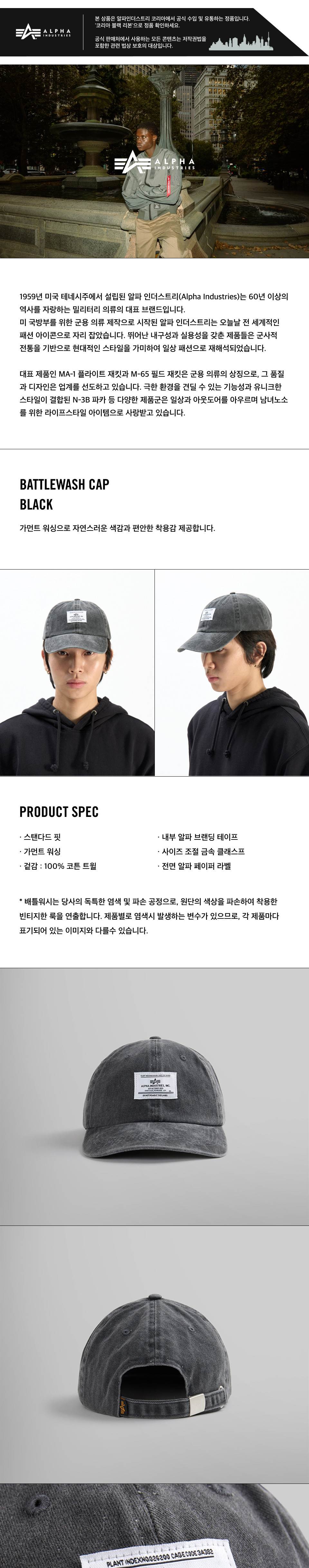 알파인더스트리 배틀워시 캡 블랙
