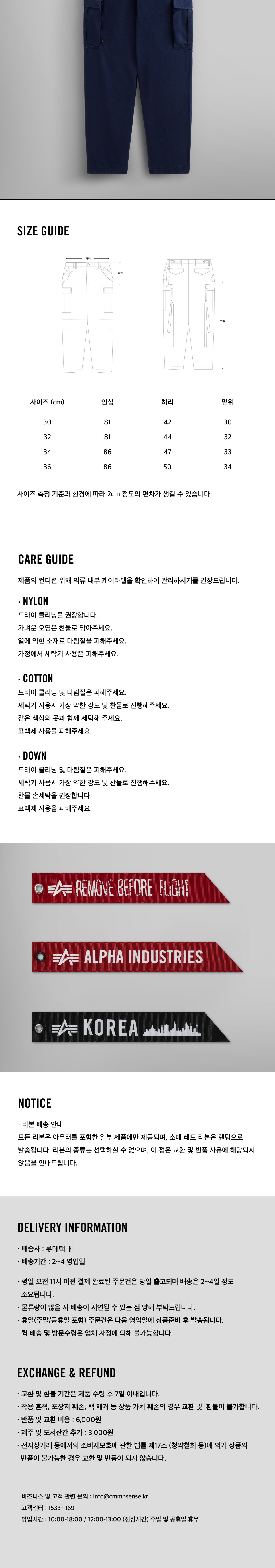 알파인더스트리 M-65 팬츠 레플리카 블루
