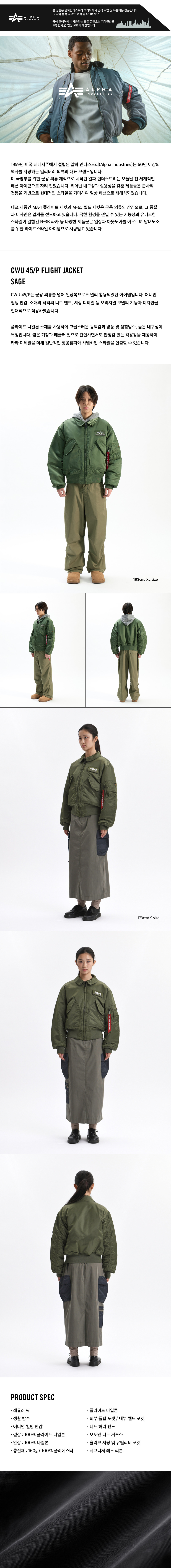 알파인더스트리 알파 CWU 45/P 플라이트 자켓 세이지