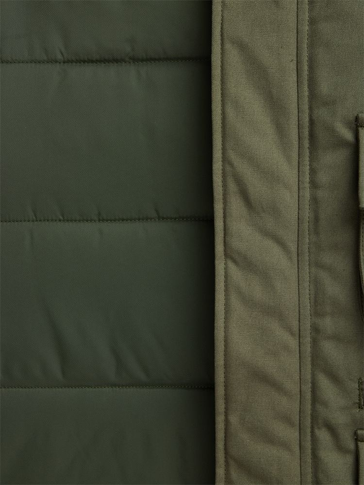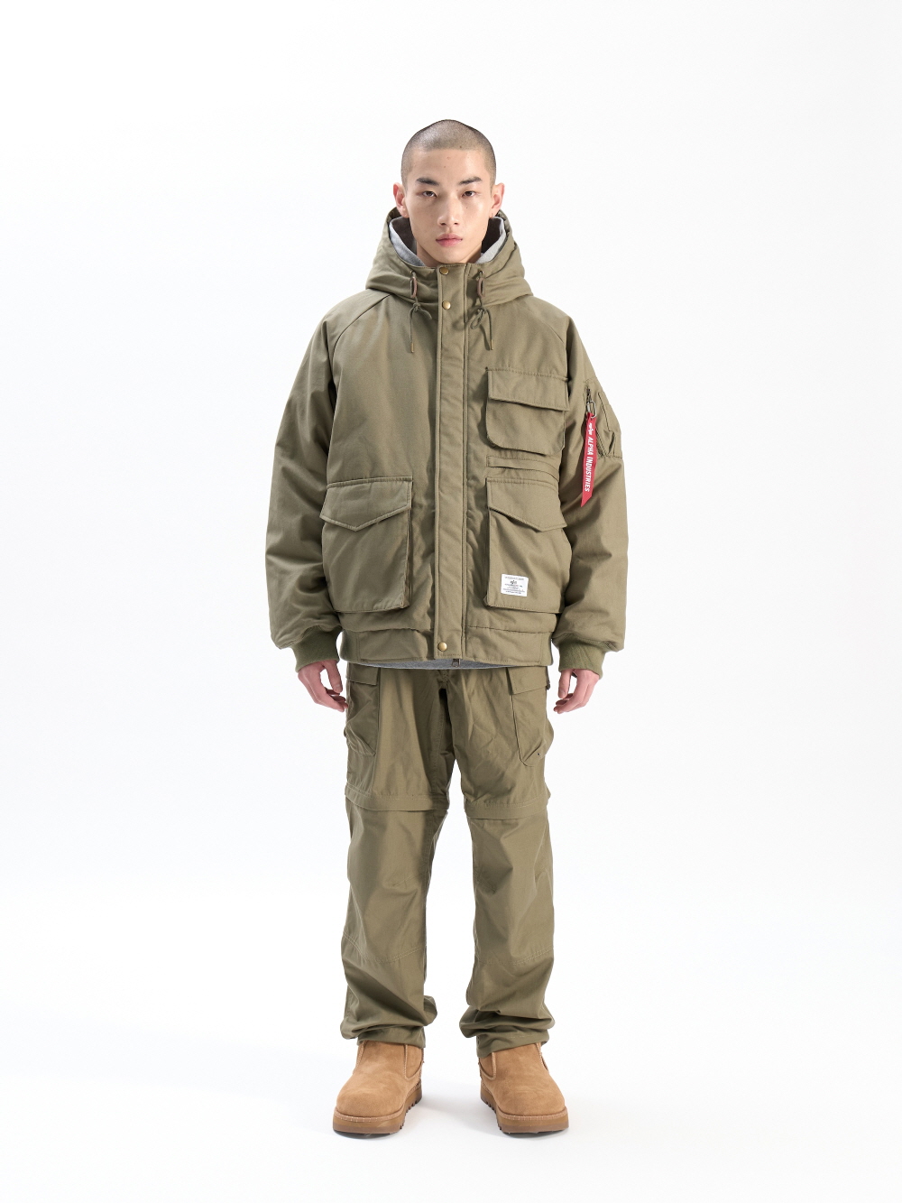 80년대의 헌팅 재킷에서 영감을 받아 제작된 MA-1 모드는 야외 활동을 위해 최적화되었습니다. 드로스트링 후드와 사이드 엔트리 포켓이 있어 완벽한 추운 날씨 보호를 제공합니다. · 1980년대의 "게임하이드" 카모플라쥬 사냥 재킷 모티브 · 착용자 왼쪽 패치 포켓 · 플랩과 삽입형 측면 엔트리가 있는 패치 포켓 2개 · 소매에 알파 레드 리본이 있는 MA-1 유틸리티 포켓 · 니트 리브 커프와 밑단 · 수평 퀼팅 안감처리 · 릴렉스 핏