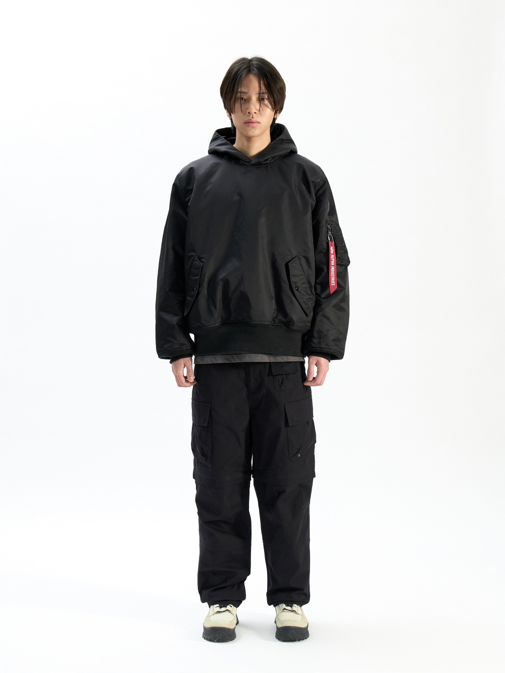 MA-1 플라이트 자켓이 새로운 스타일로 재탄생했습니다. 아이코닉한 플라이트 나일론으로 제작된 이 자켓은 시그니처 프론트 플랩 포켓과 유틸리티 포켓을 갖추고 있으며, 이중 레이어의 후드로 어떤 날씨에도 유용하게 착용할 수 있습니다. · 남녀공용 · 생활 방수 · 알파 인더스트리 자수 이중 레이어 후드 · 릴렉스 핏