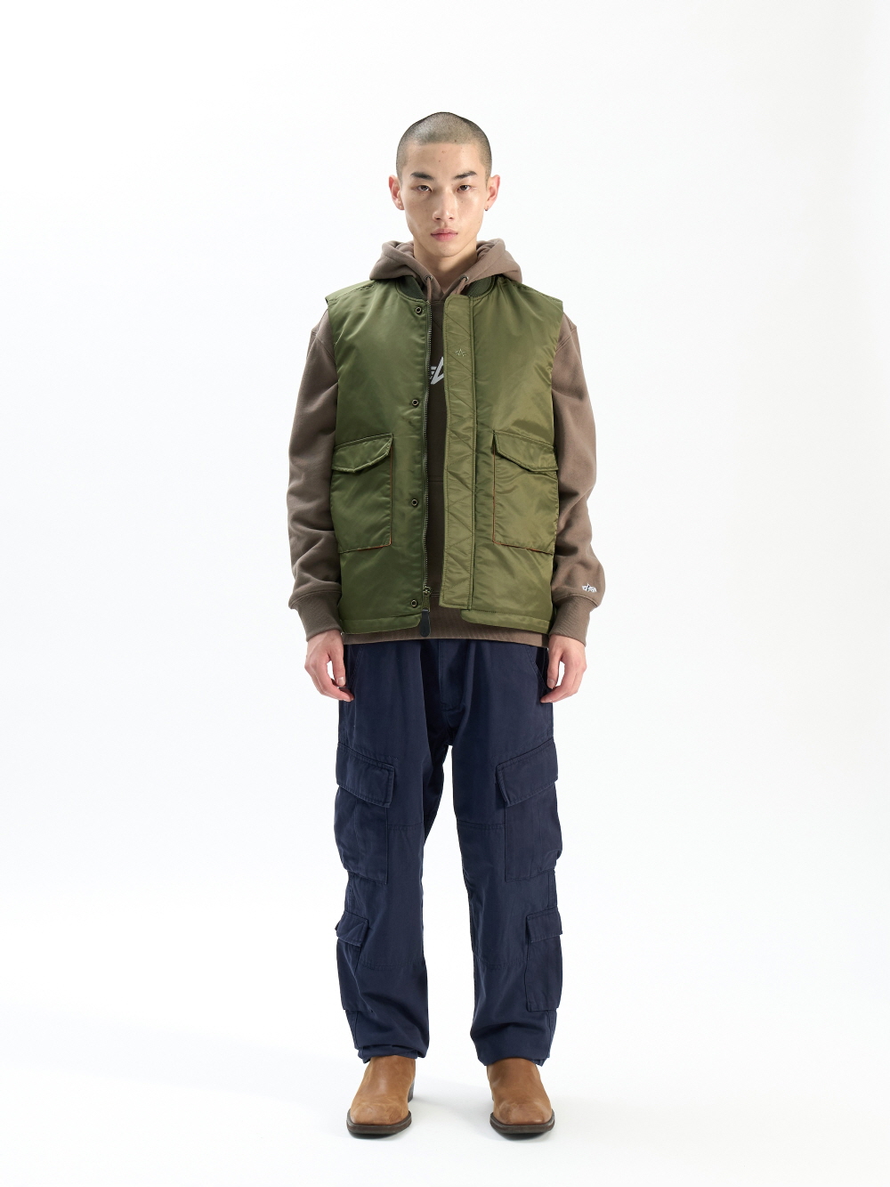 플라이트 나일론으로 제작된 MA-1 자켓에서 영감을 받은 MA-1 MOD VEST는 레이어링하여 입기 최적화된 아이템입니다. 반팔부터 셔츠, 아우터 등 다양한 제품들과 함께 착용하기 좋습니다. · 생활방수 · 지그재그 스티치 플라켓, 어니언 퀼팅 라이닝, 니트 칼라 · 전면 플랩 패치 포켓 · 레귤러 핏