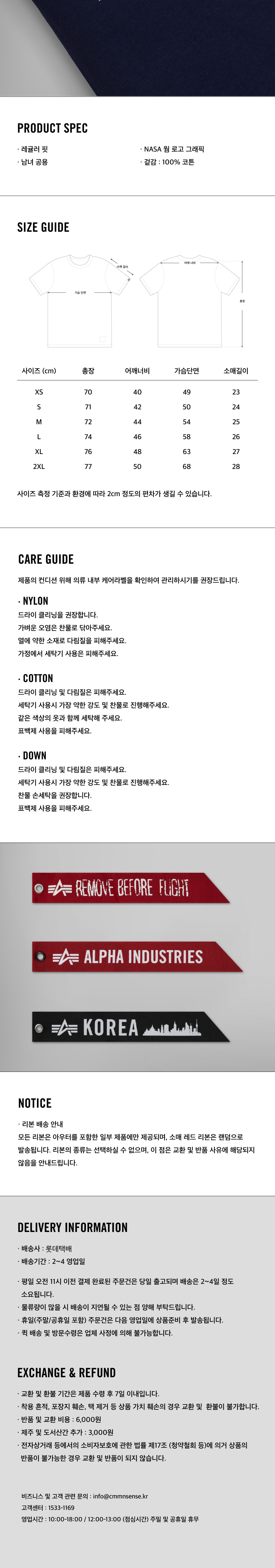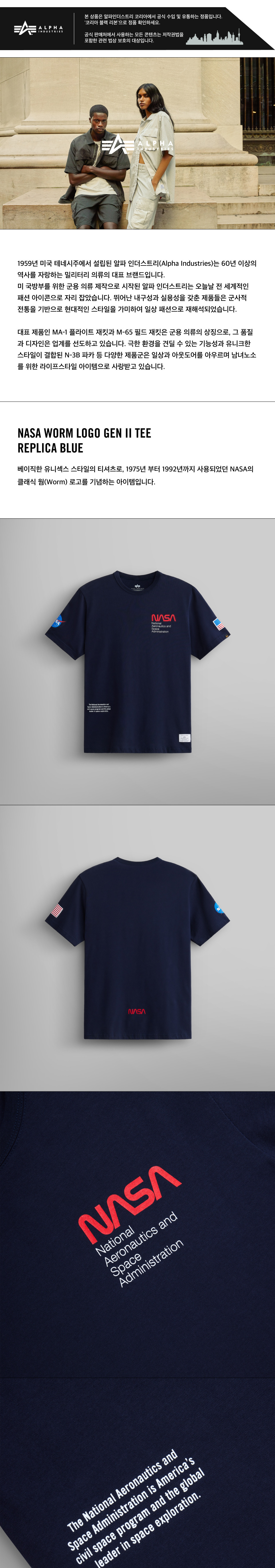 알파인더스트리 나사 웜로고 GEN II 티 레플리카 블루