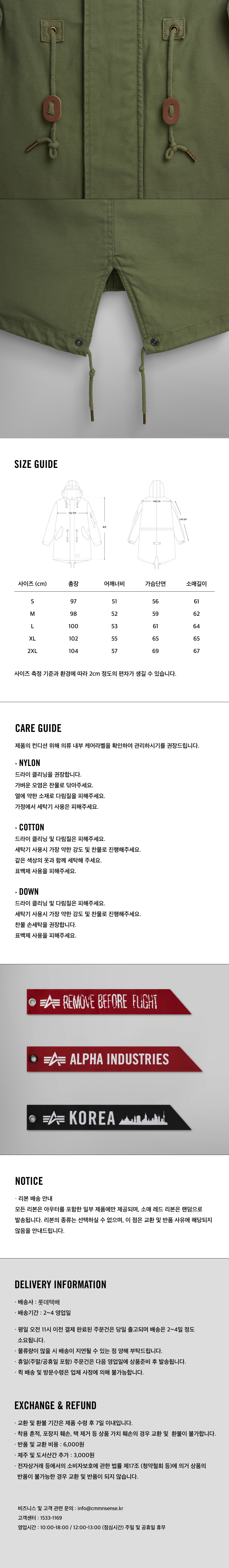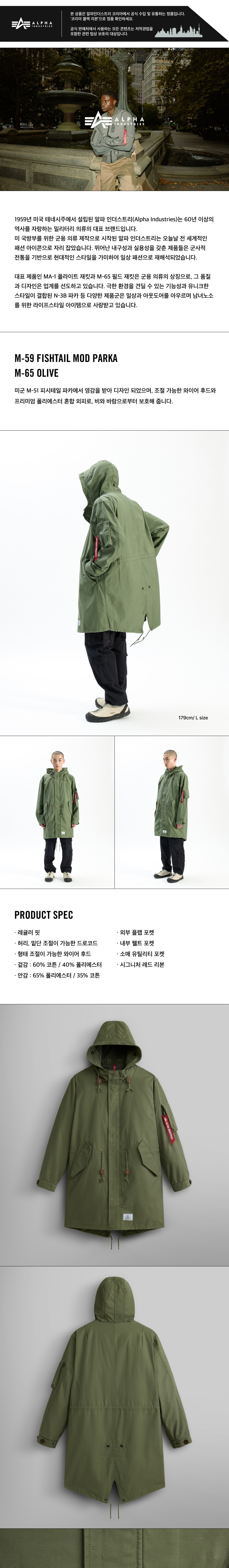 알파인더스트리 M-59 피쉬테일 모드 파카 M-65 올리브