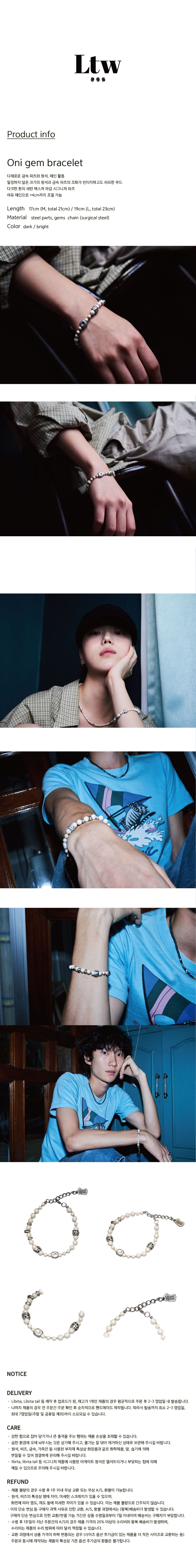 원석, 비즈, 금속, 가죽끈 등 사용된 부자재 특성상 화장품과 같은 화학제품, 땀, 습기에 의해 변질될 수 있어 청결하게 관리해 주시길 바랍니다.