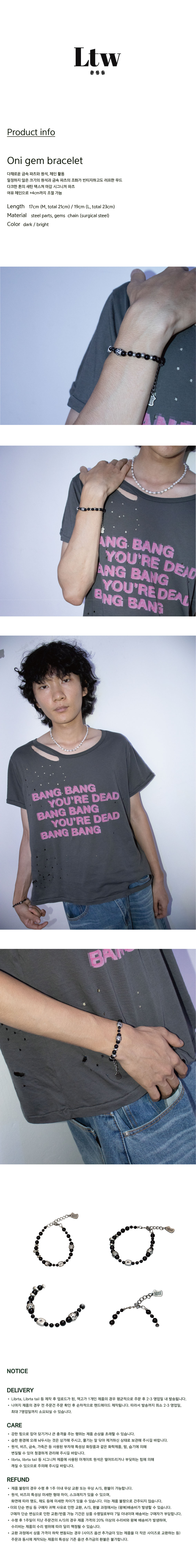 원석, 비즈, 금속, 가죽끈 등 사용된 부자재 특성상 화장품과 같은 화학제품, 땀, 습기에 의해 변질될 수 있어 청결하게 관리해 주시길 바랍니다.
