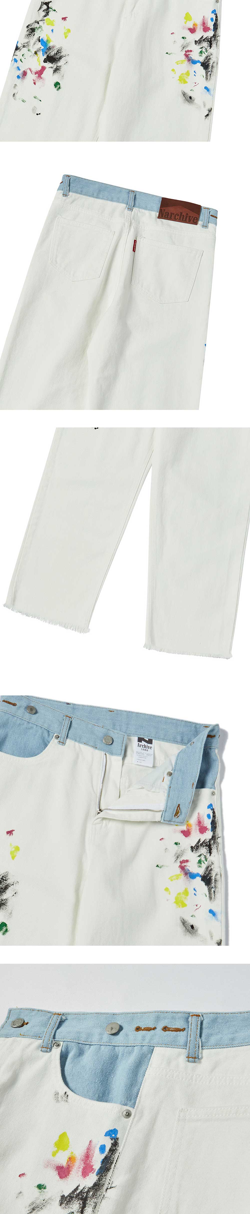 엔 아카이브 핸드 메이드 페인팅 데님 팬츠 화이트