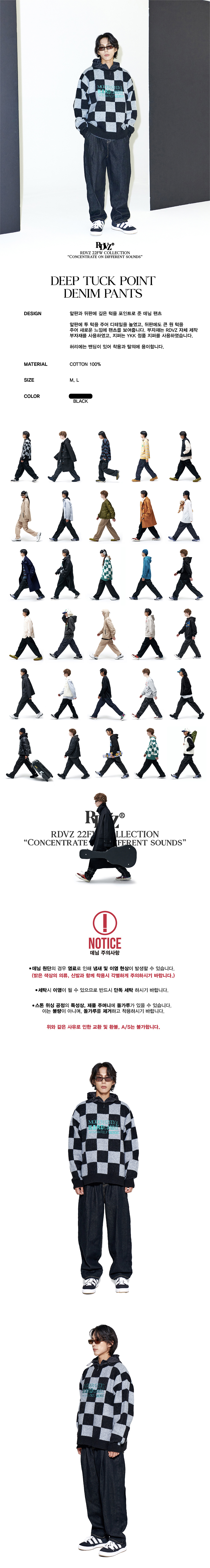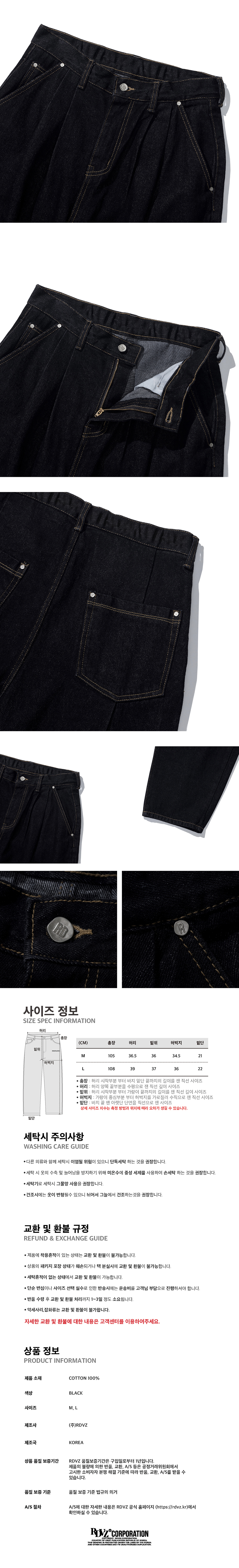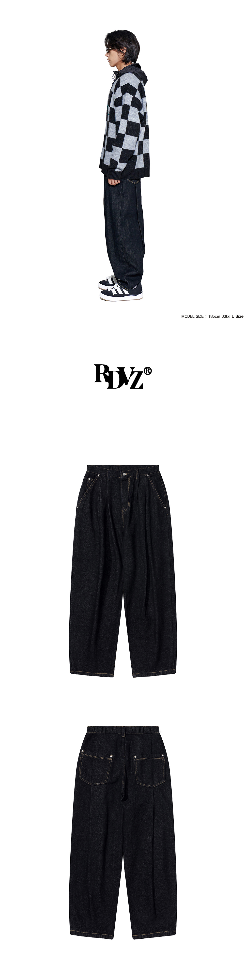 알디브이제트 딥 턱 포인트 데님 팬츠 블랙