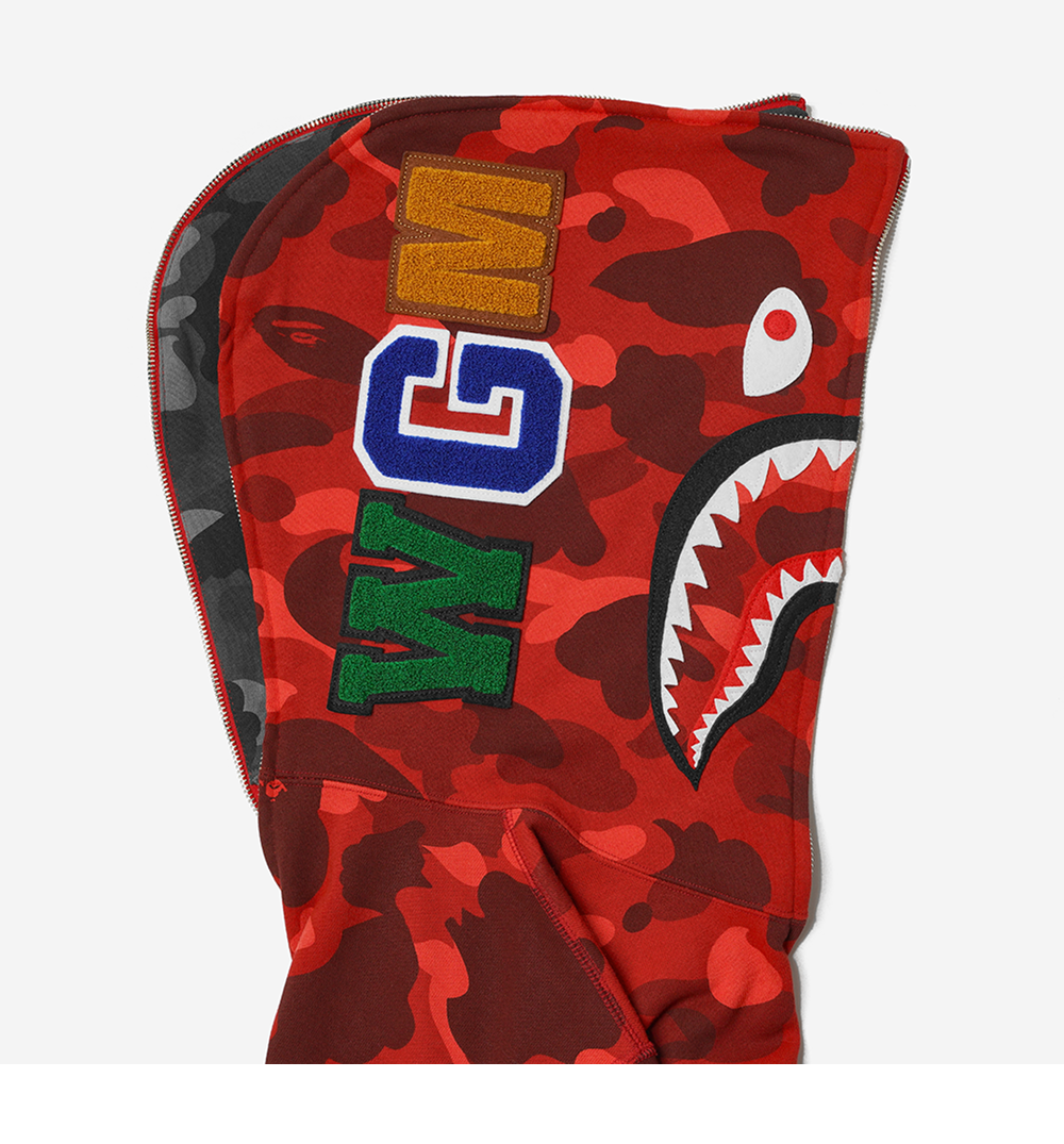 베이프 컬러 카모 세퍼레이트 샤크 풀 집 후드 레드 블랙