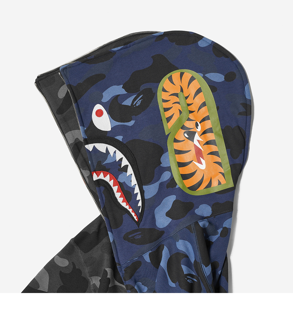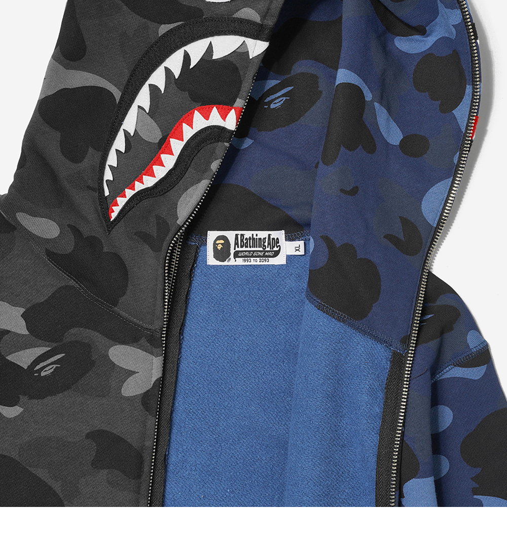 베이프 컬러 카모 세퍼레이트 샤크 풀 집 후드 블랙 네이비