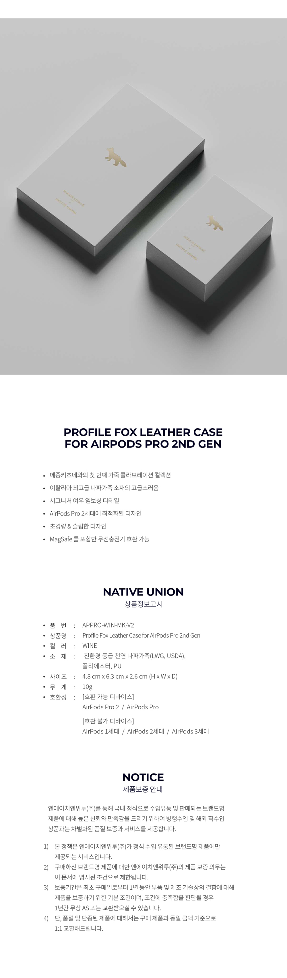 네이티브유니온 x 메종 키츠네 폭스 에어팟 프로2 케이스 와인 리스