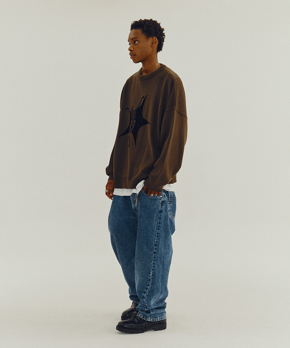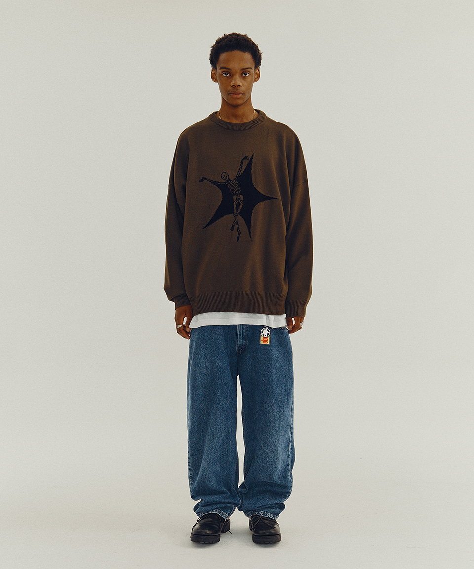 스웨이드 스컬 스타 니트 올리브