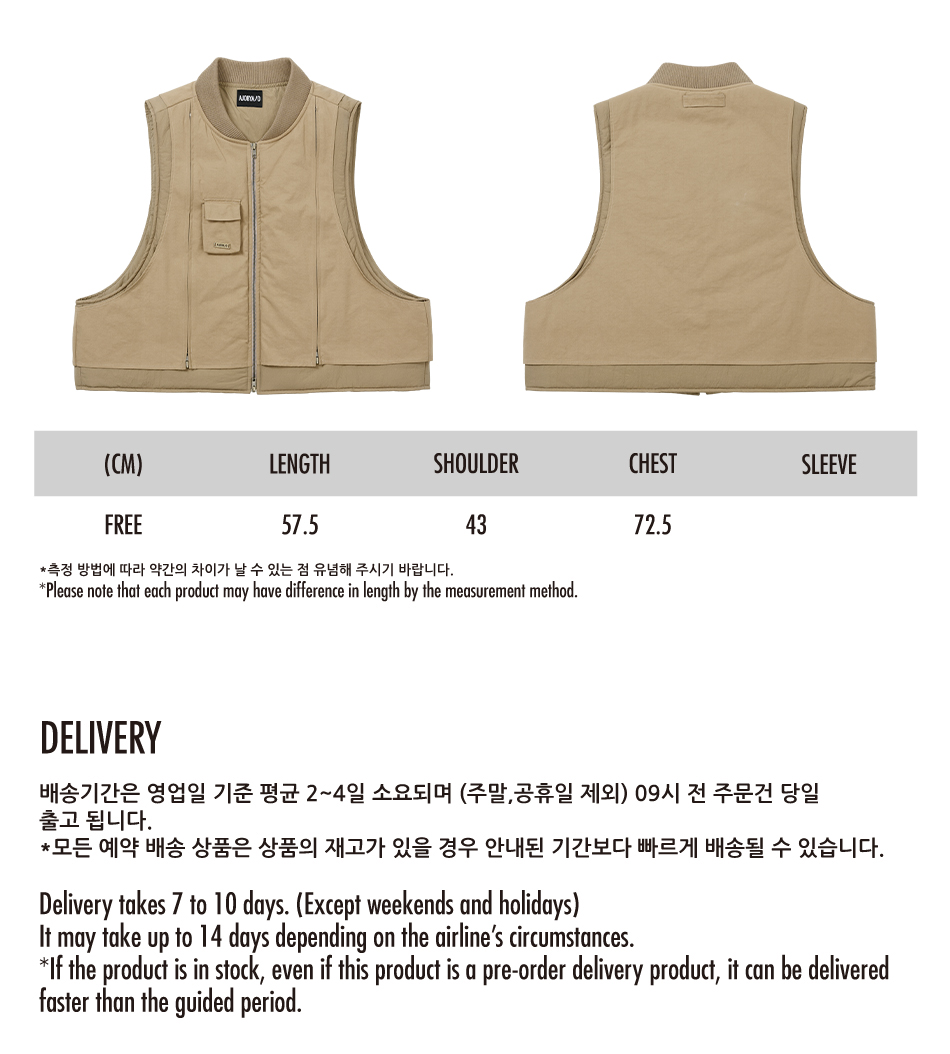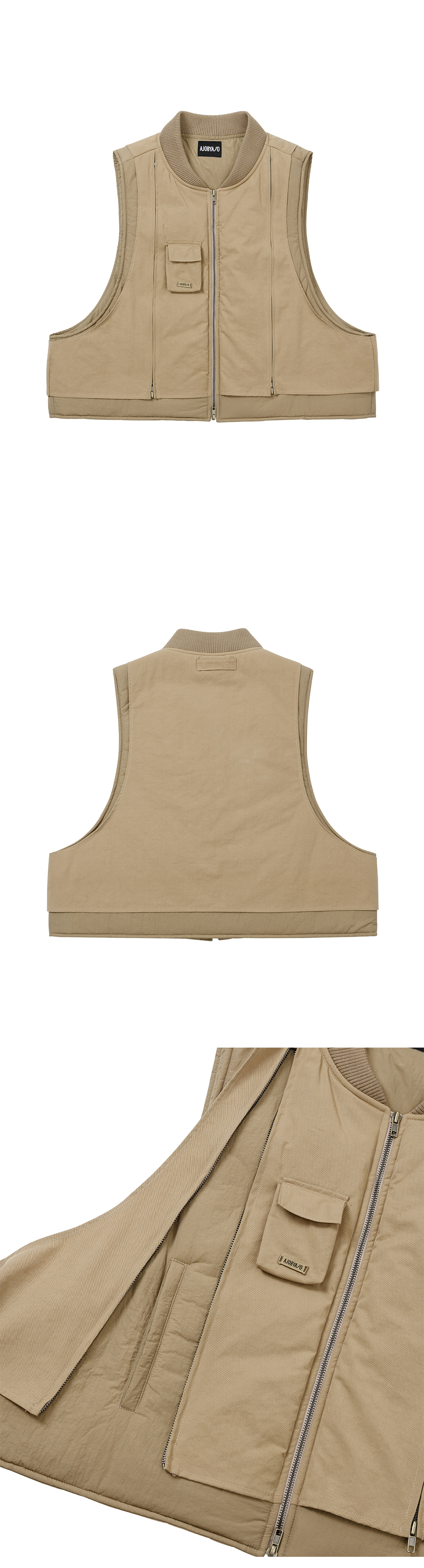 아조바이아조 레이어드 패디드 집업 베스트 베이지