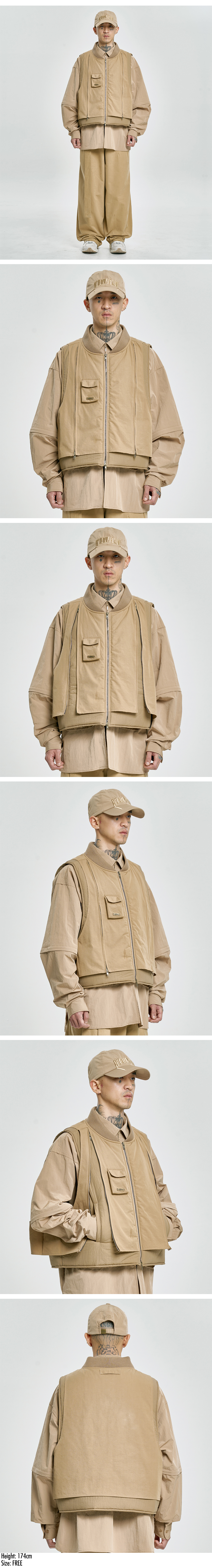 Ajobyajo Layered Padded Zip Up Vest Beige