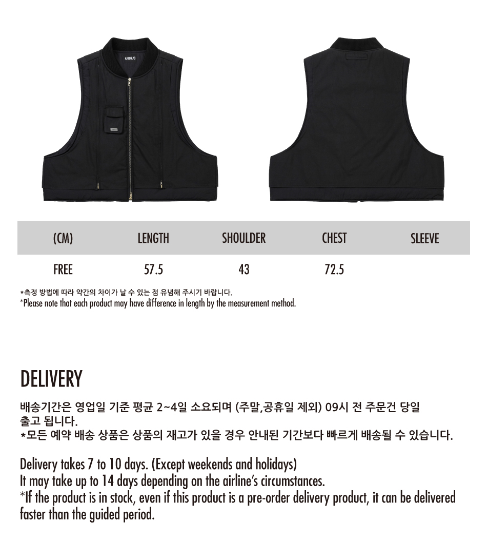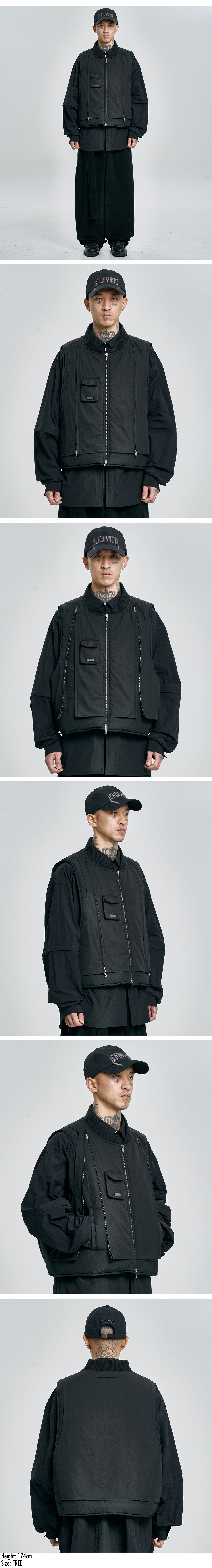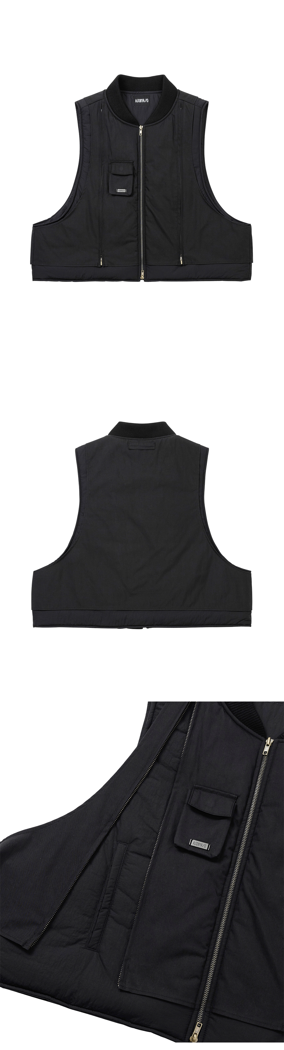 아조바이아조 레이어드 패디드 집업 베스트 블랙
