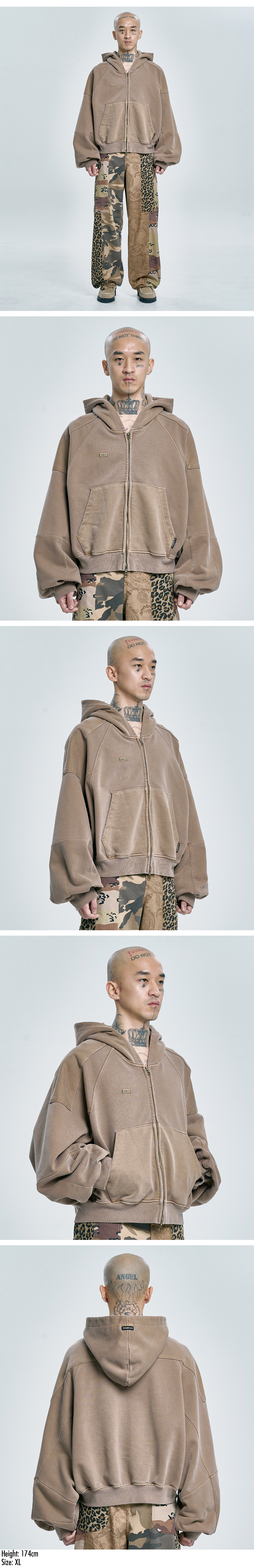 Ajobyajo Vintage Pigment Zip-Up Hoodie Mocha