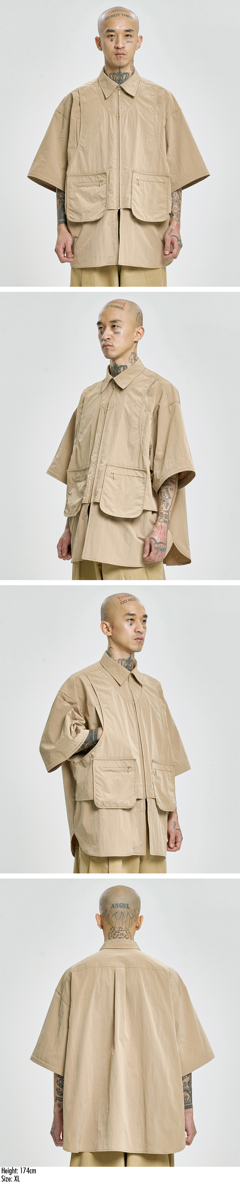 Ajobyajo Layered Vest Nylon Shirt Beige