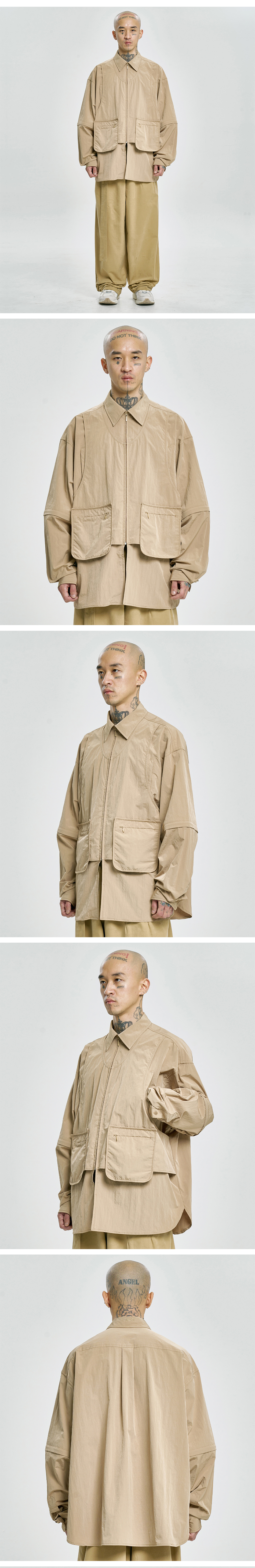 아조바이아조 레이어드 베스트 나일론 셔츠 베이지