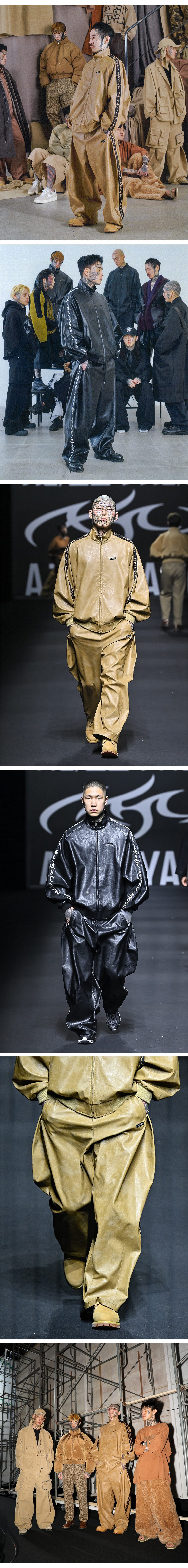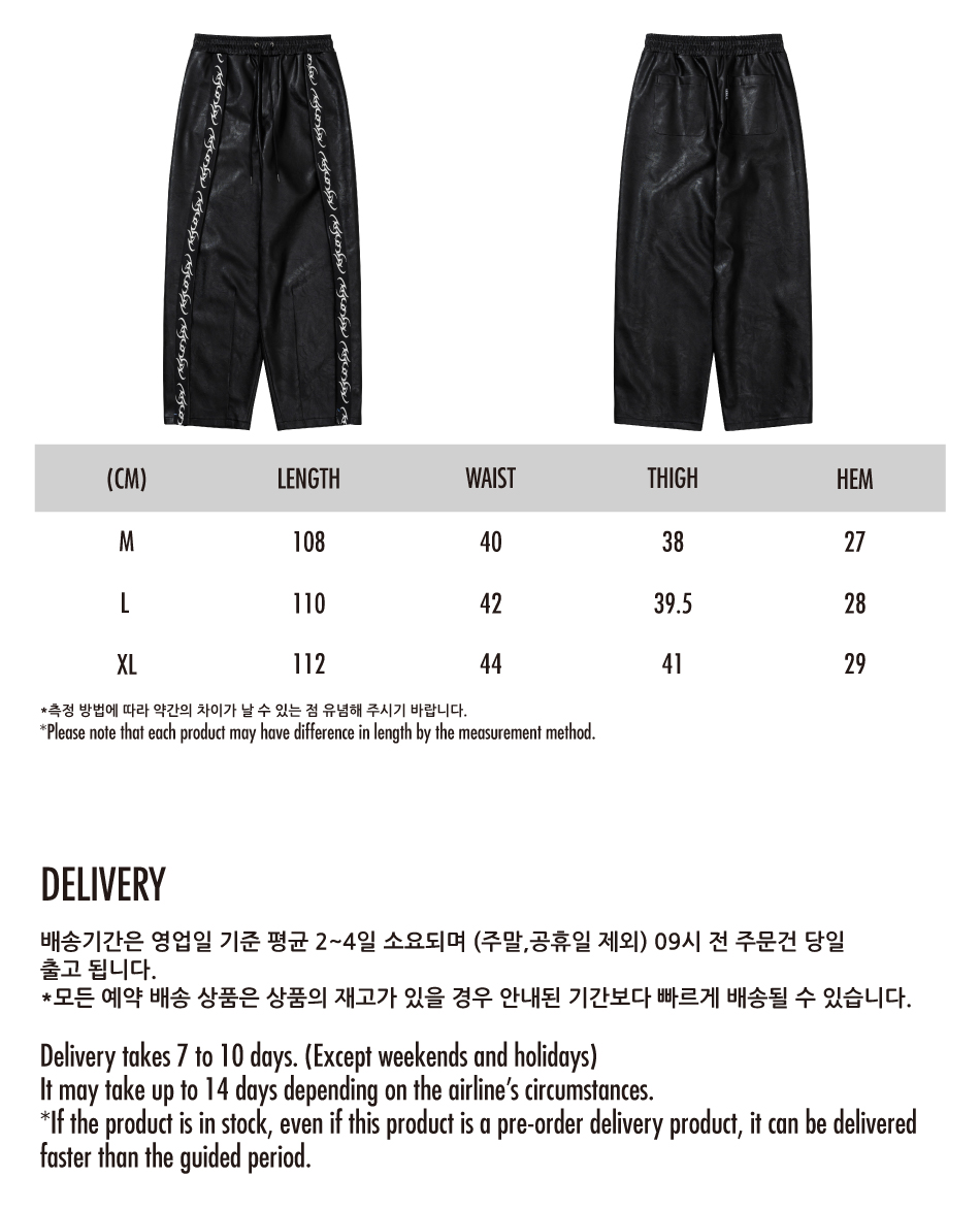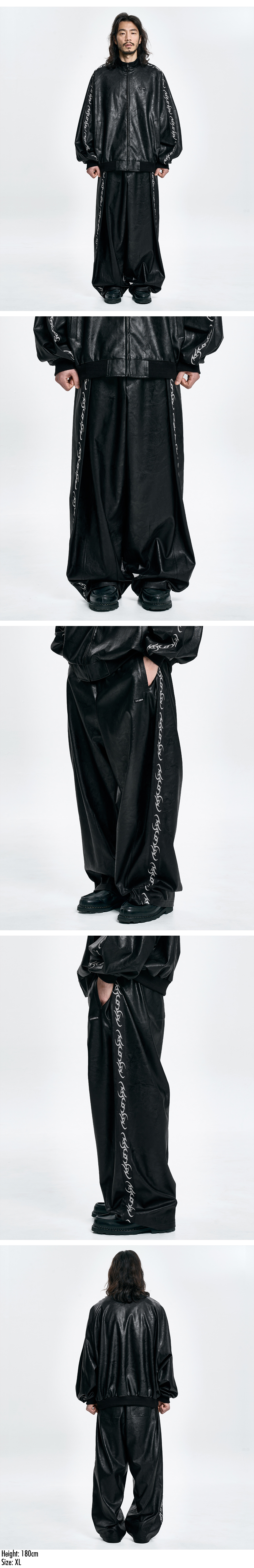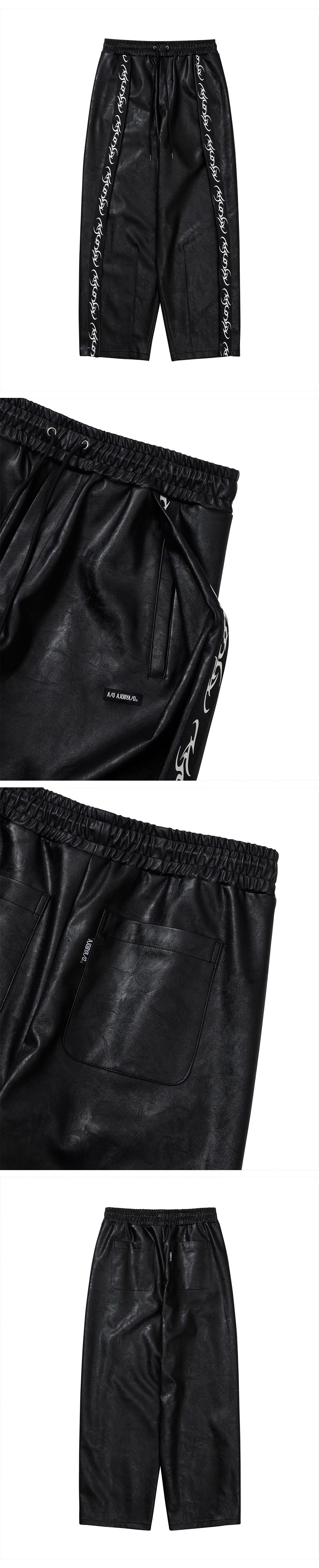 아조바이아조 비건 레더 원 턱 트랙 팬츠 블랙