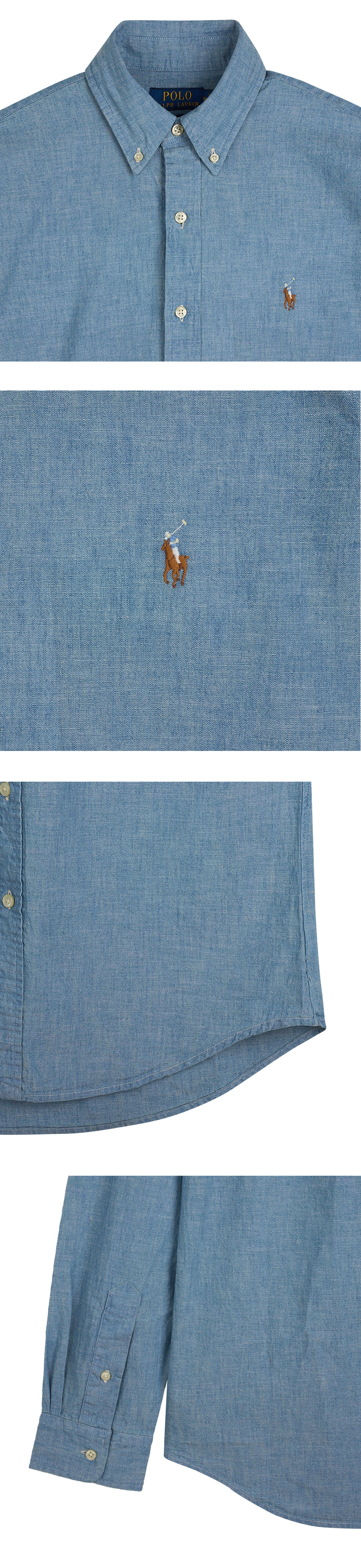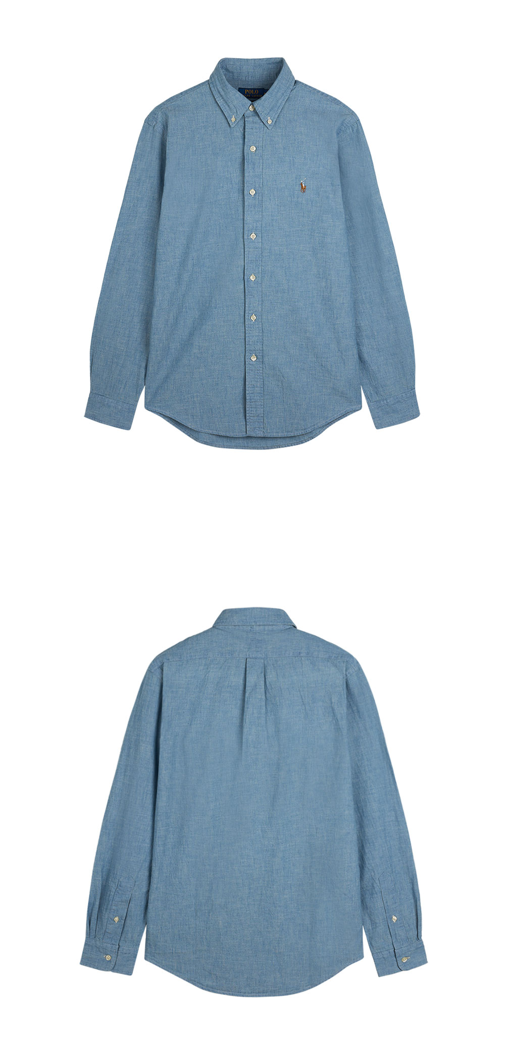 < KREAM은 랄프로렌 코리아 공식 파트너사로 모든 상품은 랄프로렌 코리아(유)에서 공급받은 정식 수입 제품입니다 > 내구성 있는 코튼 샴브레이 소재의 트림 버튼다운 셔츠로, 랄프 로렌의 포니 시그니처 자수가 돋보이는 디자인입니다. - 커스텀핏: 클래식핏과 슬림핏 사이의 트림한 실루엣 - 버튼다운 포인트 칼라, 버튼 플래킷 - 버튼 배럴 커프스, 롱 슬리브 - 박스 플리츠가 있는 뒷면의 스플릿 요크가 편안한 핏과 뛰어난 활동성을 보장 *소매 부분이 접힌 상태로 배송될 수 있습니다.