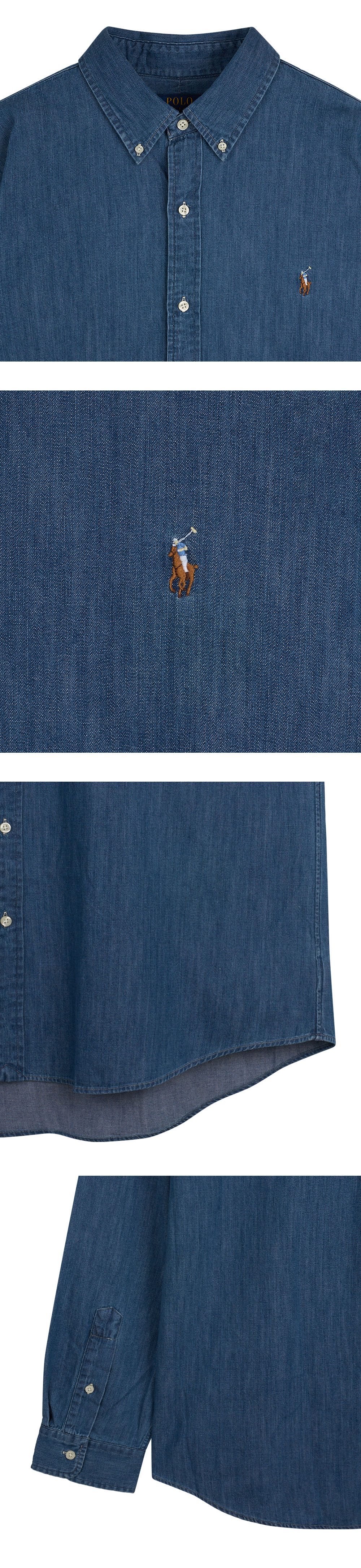 < KREAM은 랄프로렌 코리아 공식 파트너사로 모든 상품은 랄프로렌 코리아(유)에서 공급받은 정식 수입 제품입니다 > 내구성 있는 코튼 샴브레이 소재의 트림 버튼다운 셔츠로, 랄프 로렌의 포니 시그니처 자수가 돋보이는 디자인입니다. - 커스텀핏: 클래식핏과 슬림핏 사이의 트림한 실루엣 - 버튼다운 포인트 칼라, 버튼 플래킷 - 버튼 배럴 커프스, 롱 슬리브 - 박스 플리츠가 있는 뒷면의 스플릿 요크가 편안한 핏과 뛰어난 활동성을 보장 *소매 부분이 접힌 상태로 배송될 수 있습니다.