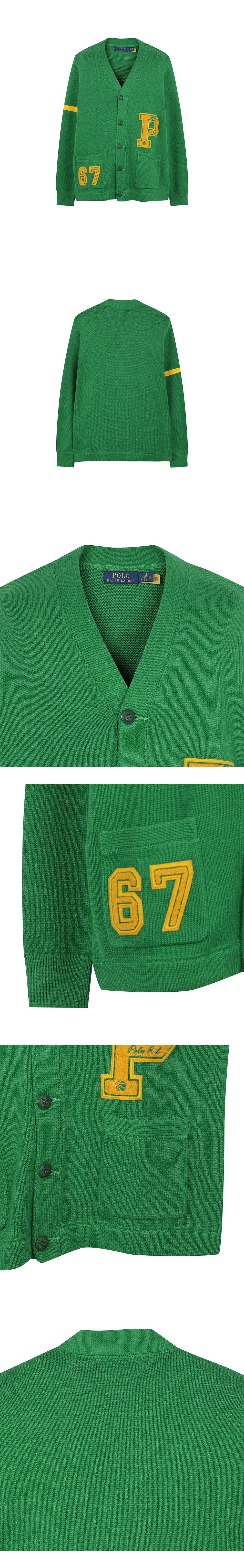 < KREAM은 랄프로렌 코리아 공식 파트너사로 모든 상품은 랄프로렌 코리아(유)에서 공급받은 정식 수입 제품입니다 > 바시티 자켓에서 영감을 받은 폴로 랄프 로렌의 코튼 레터맨 가디건입니다. - 레귤러 핏 - 좌측 가슴에 'P' 로고 셔닐 패치 - 우측 포켓에 창립 연도인 '67' 셔닐 패치