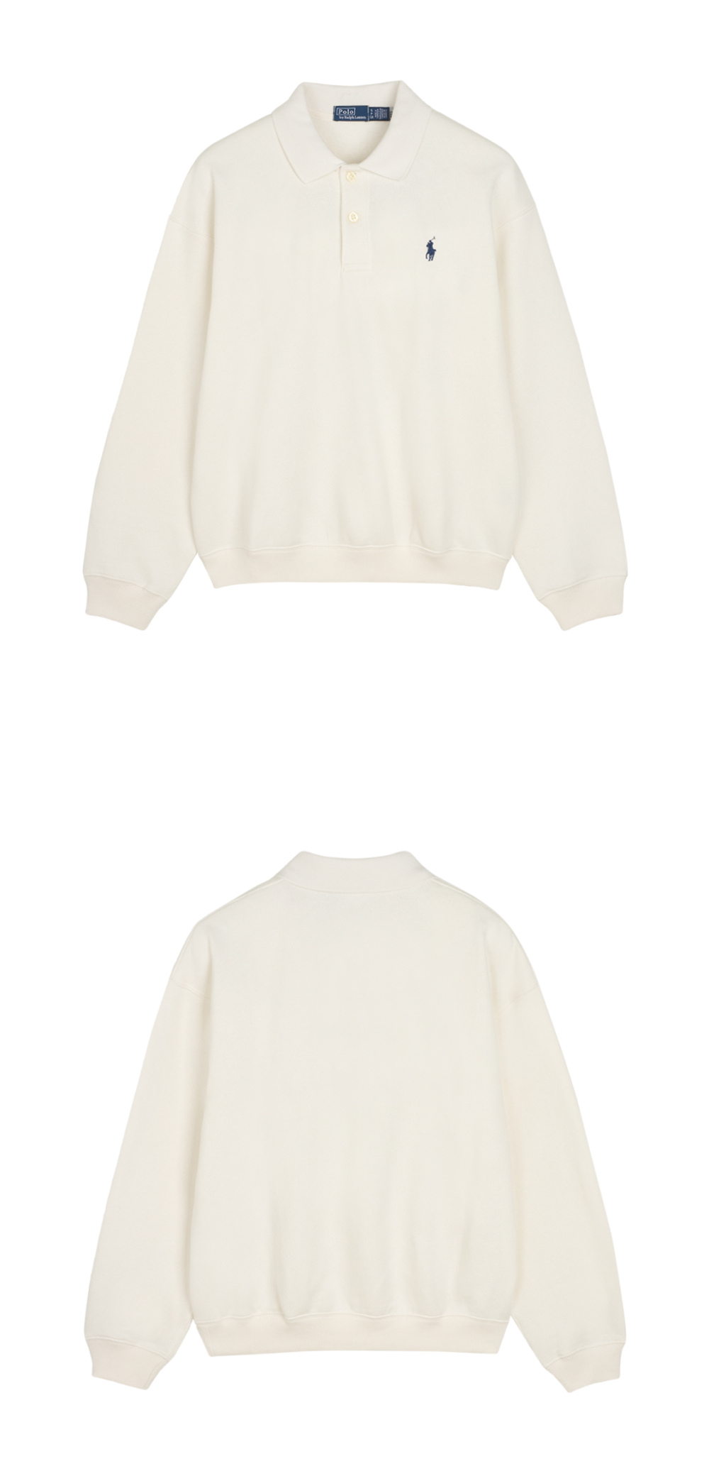 < KREAM은 랄프로렌 코리아 공식 파트너사로 모든 상품은 랄프로렌 코리아(유)에서 공급받은 정식 수입 제품입니다 > 코튼 블렌드 플리스 소재로 제작한 롱 슬리브 풀오버로, 클래식한 폴로 칼라와 2버튼 플래킷으로 디자인했습니다. 체스트에 시그니처 포니가 자수 처리되었습니다.