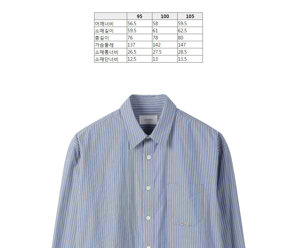 커스텀멜로우 오버사이즈 핏 스트라이프 셔츠 블루