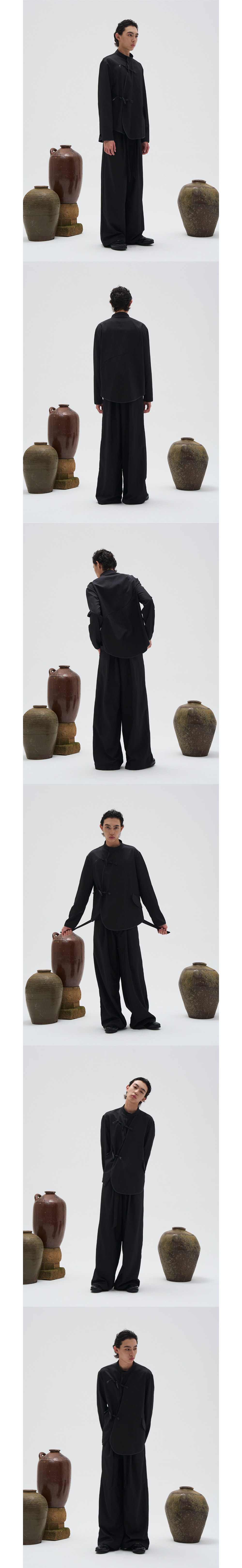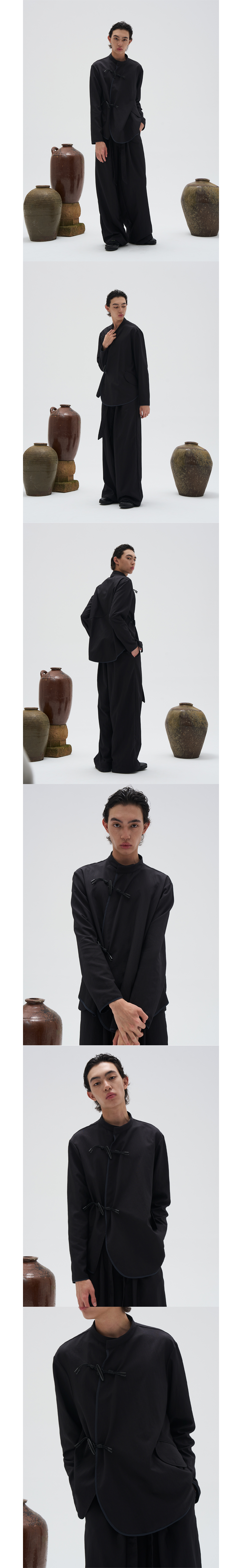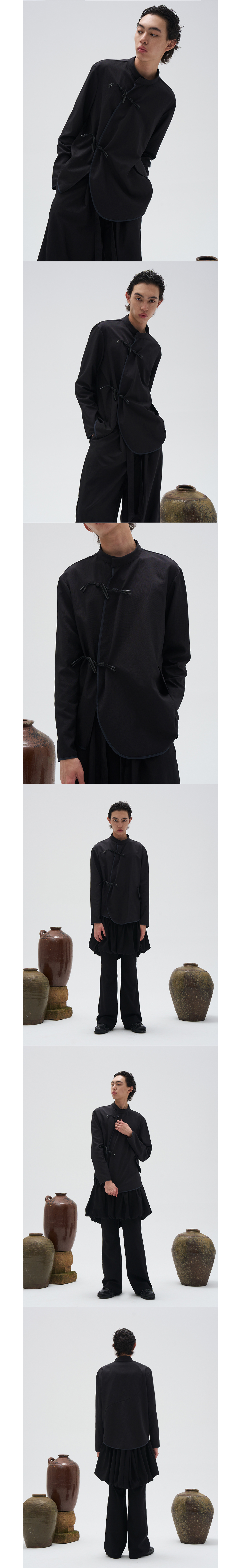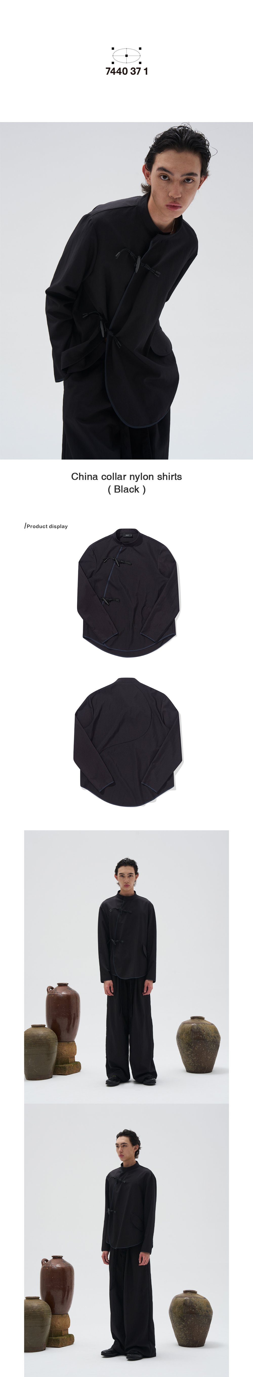 ● 차이나 카라 / 버클 디테일의 나일론 셔츠 ● 우드 버클 사용
