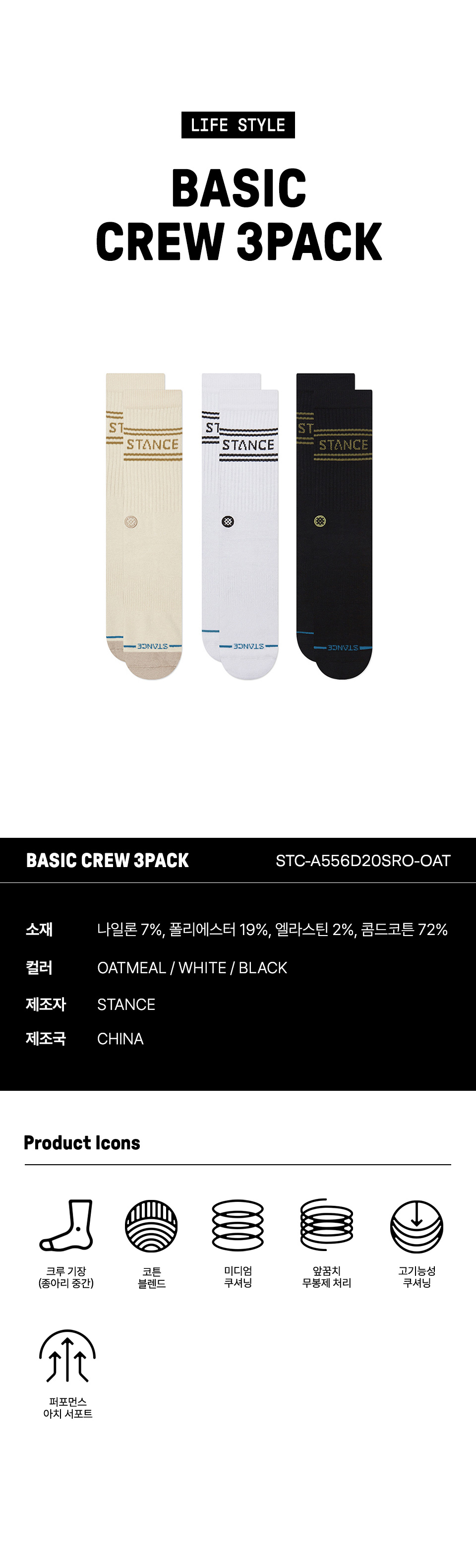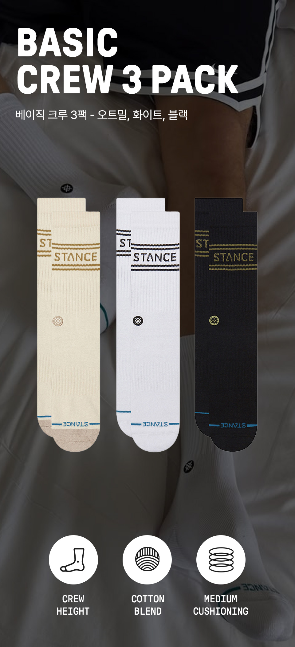 스탠스 베이직 3팩 오트밀