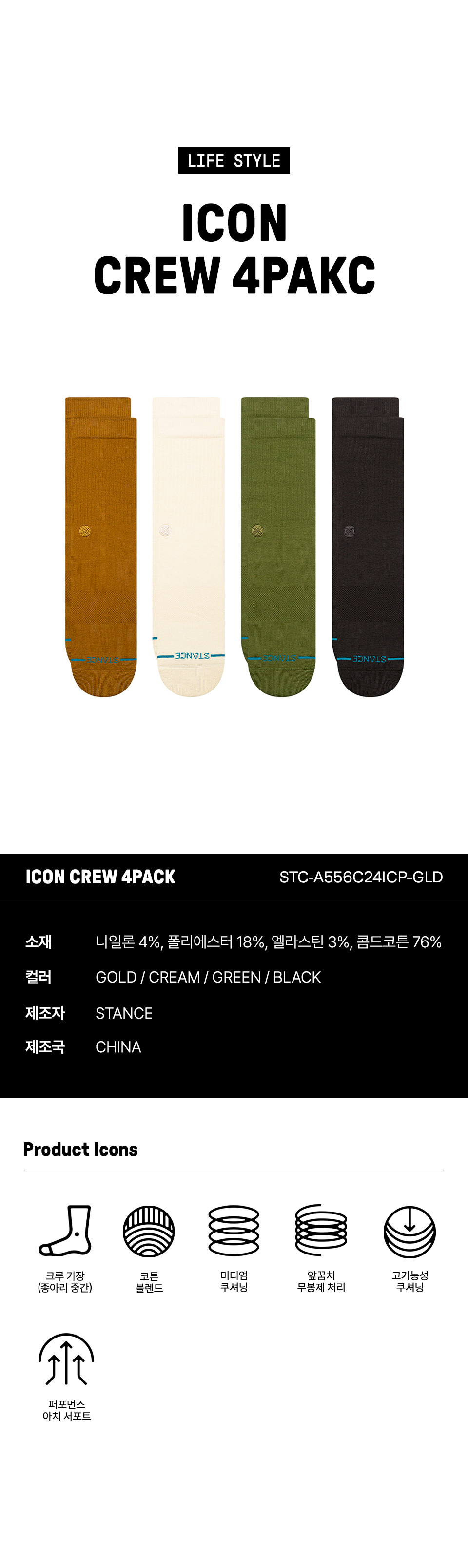 스탠스 아이콘 크루 4팩