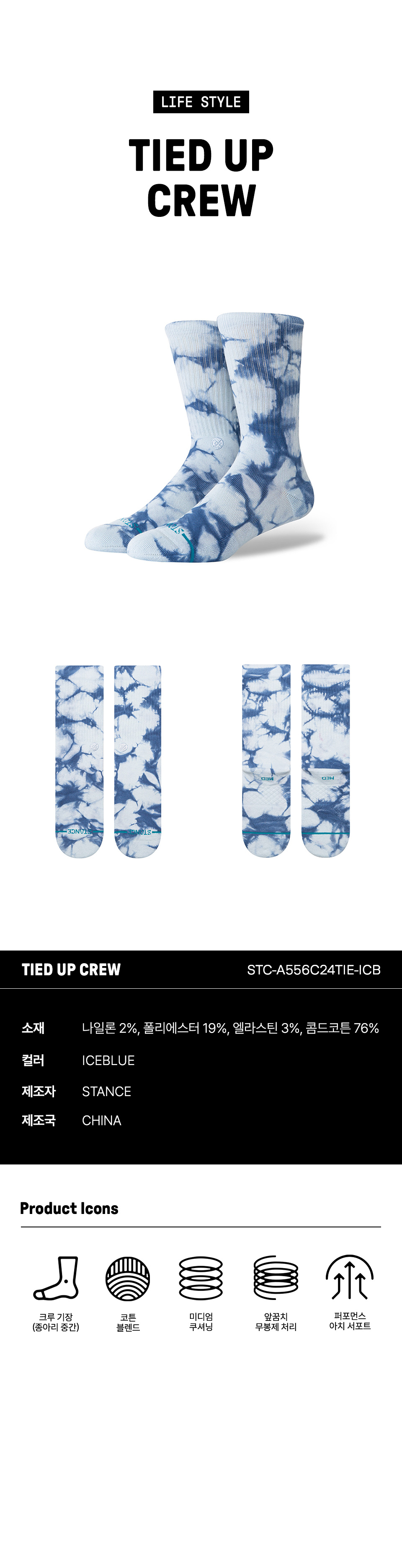 스탠스 타이드 업 크루 아이스블루