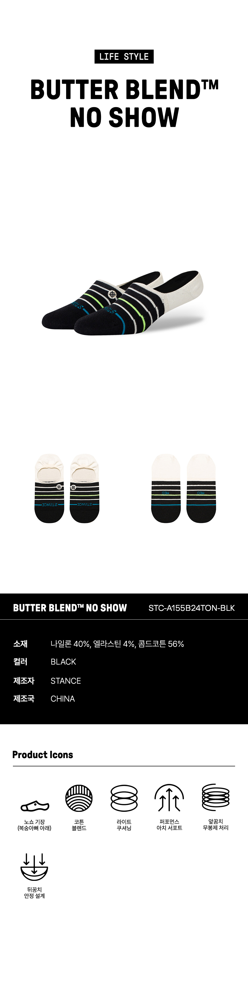 스탠스 버터 블랜드 노쇼 블랙
