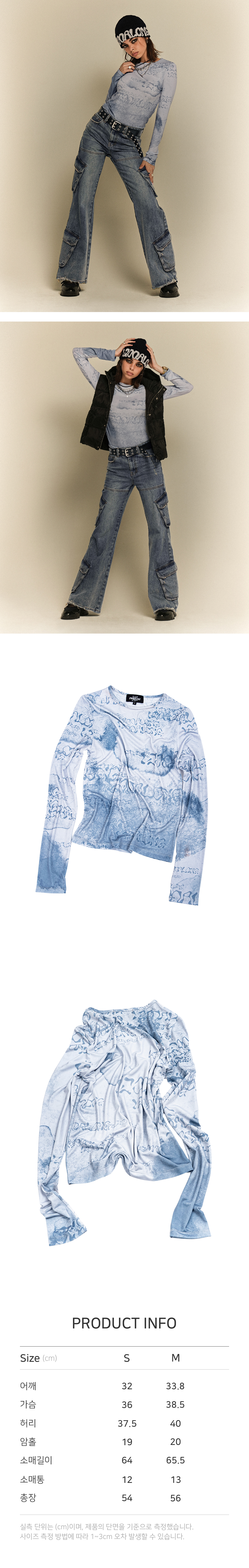 | 어깨 | 가슴단면 | 허리단면 | 암홀 | 소매길이 | 소매넓이 | 총장 |