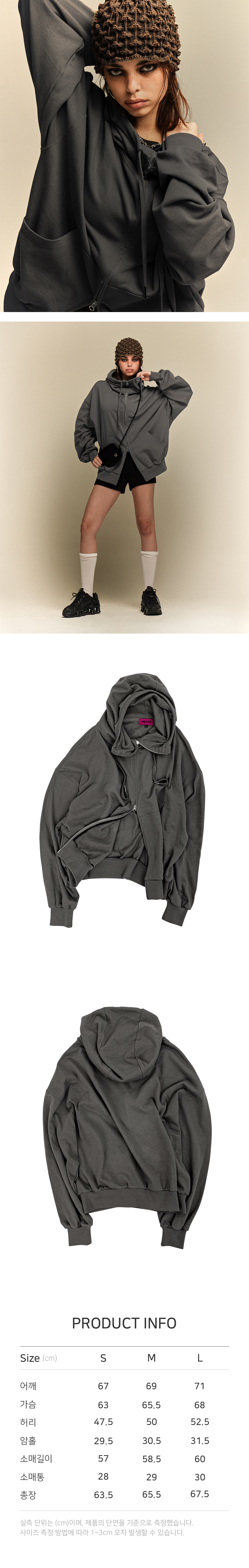 스트릿 연출이 가능한 하이넥 오버핏 후드집업 FEATURE - 하이넥 디테일 - 오버핏 실루엣 - 로고 각인 지퍼