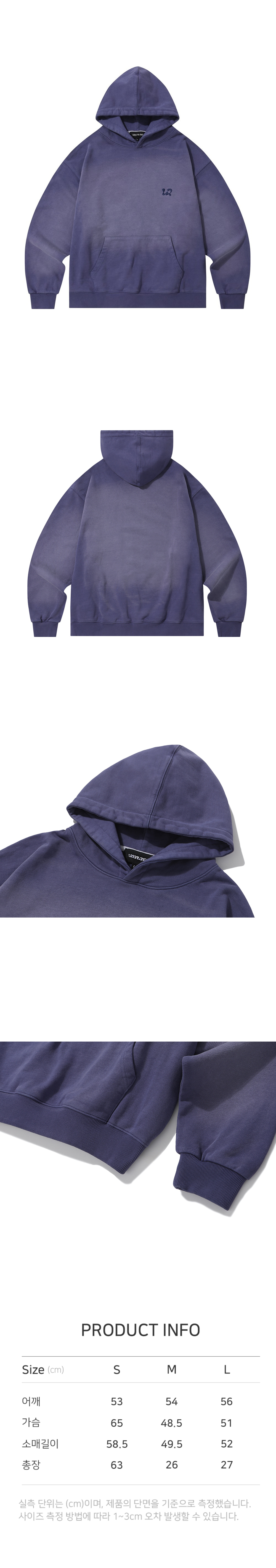 가먼트 워싱을 통해 빈티지한 색감을 표현하여 내추럴한 느낌으로 데일리하게 착용 가능한 빈티지 워싱 후드 FEATURE - 여유로운 오버사이즈 실루엣 (Oversize Silhouette) - 전면 멜로우 로고 자수 - 가먼트 워싱 특성상 이염주의