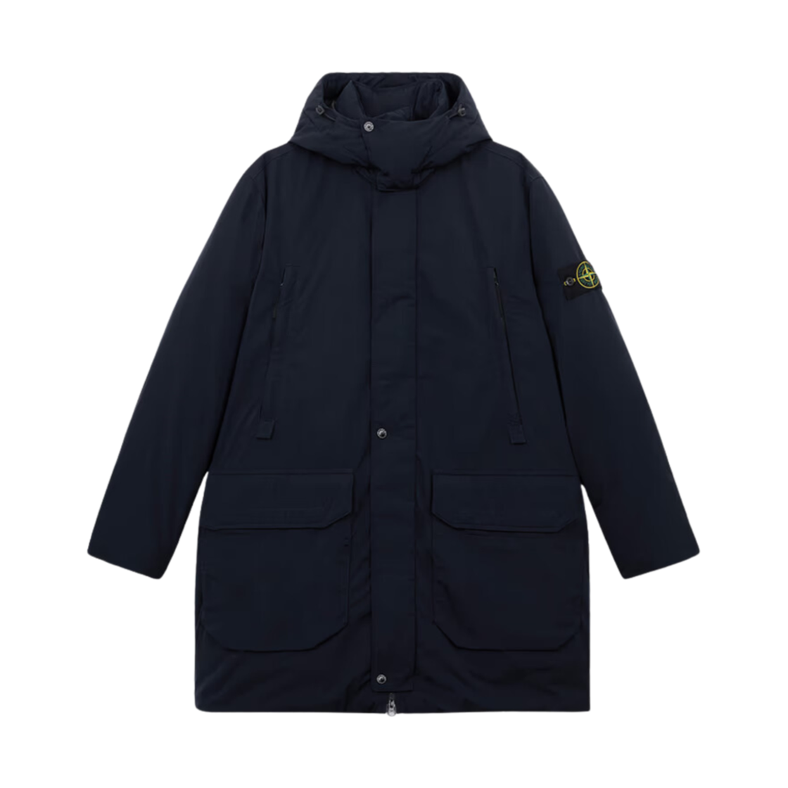Stone Island 70726 Polyester Micro Twill Long Down Parka with Anti Drop Navy Blue - 24FW