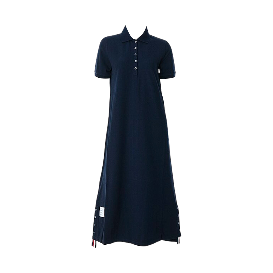 (W) Thom Browne Classic Cotton Pique Shirt Dress Navy