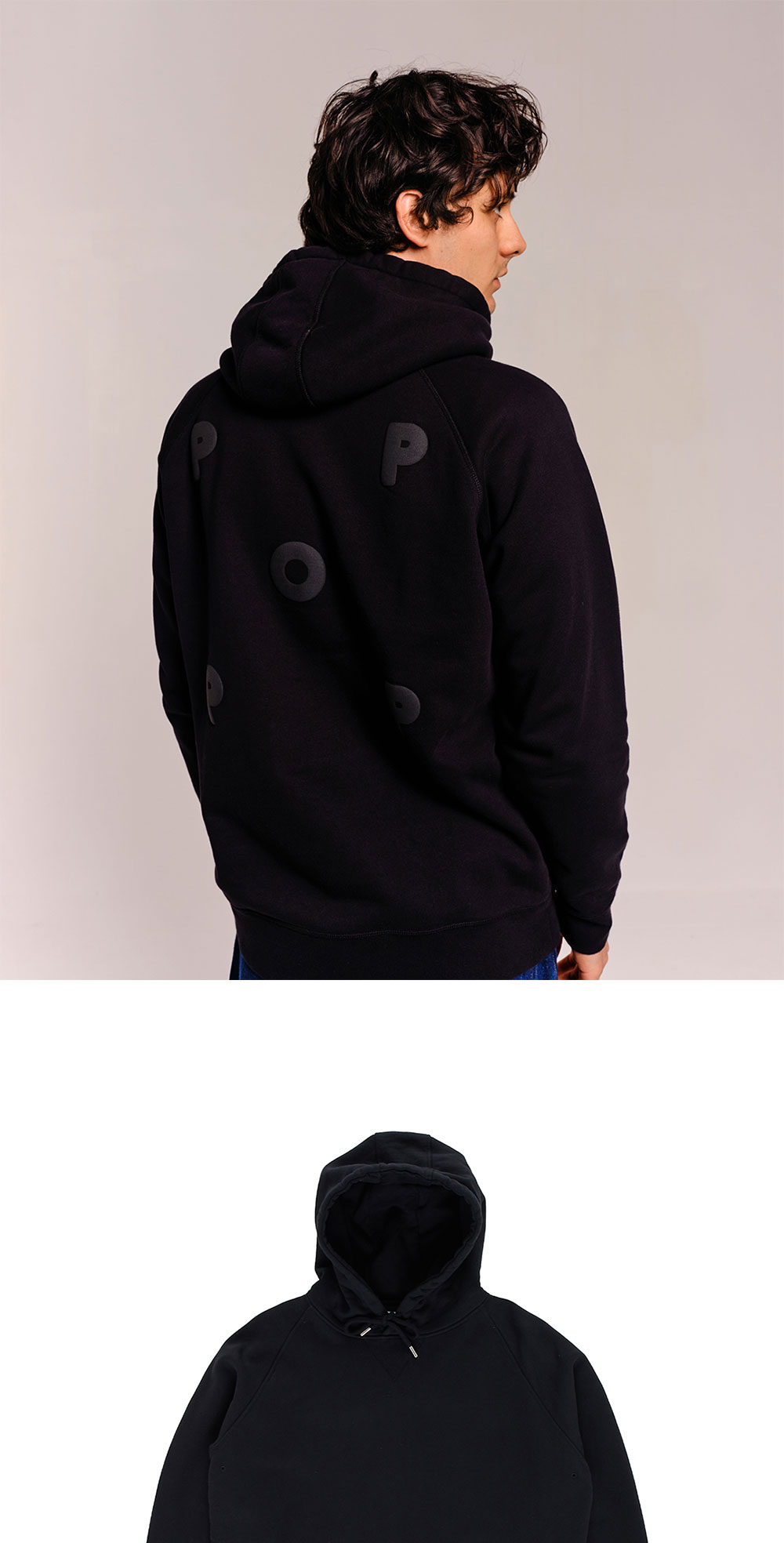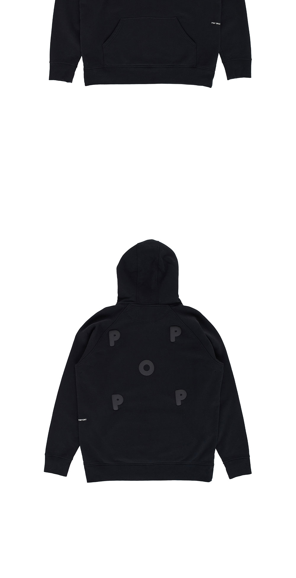 팝 트레이딩 컴퍼니 퍼프드 로고 후드 스웨트 블랙 - 24FW