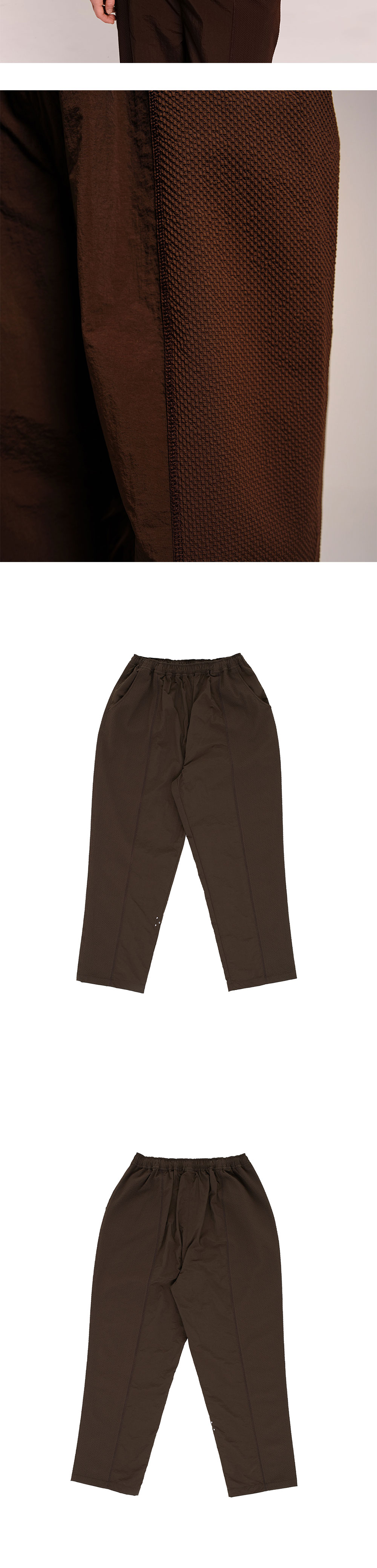 대비되는 소재의 사용이 돋보이는 팝 트레이딩 컴퍼니의 투 톤 풋볼 팬츠입니다. - 스트레이트 루즈핏 - 내측 나일론, 외측 시어서커 소재