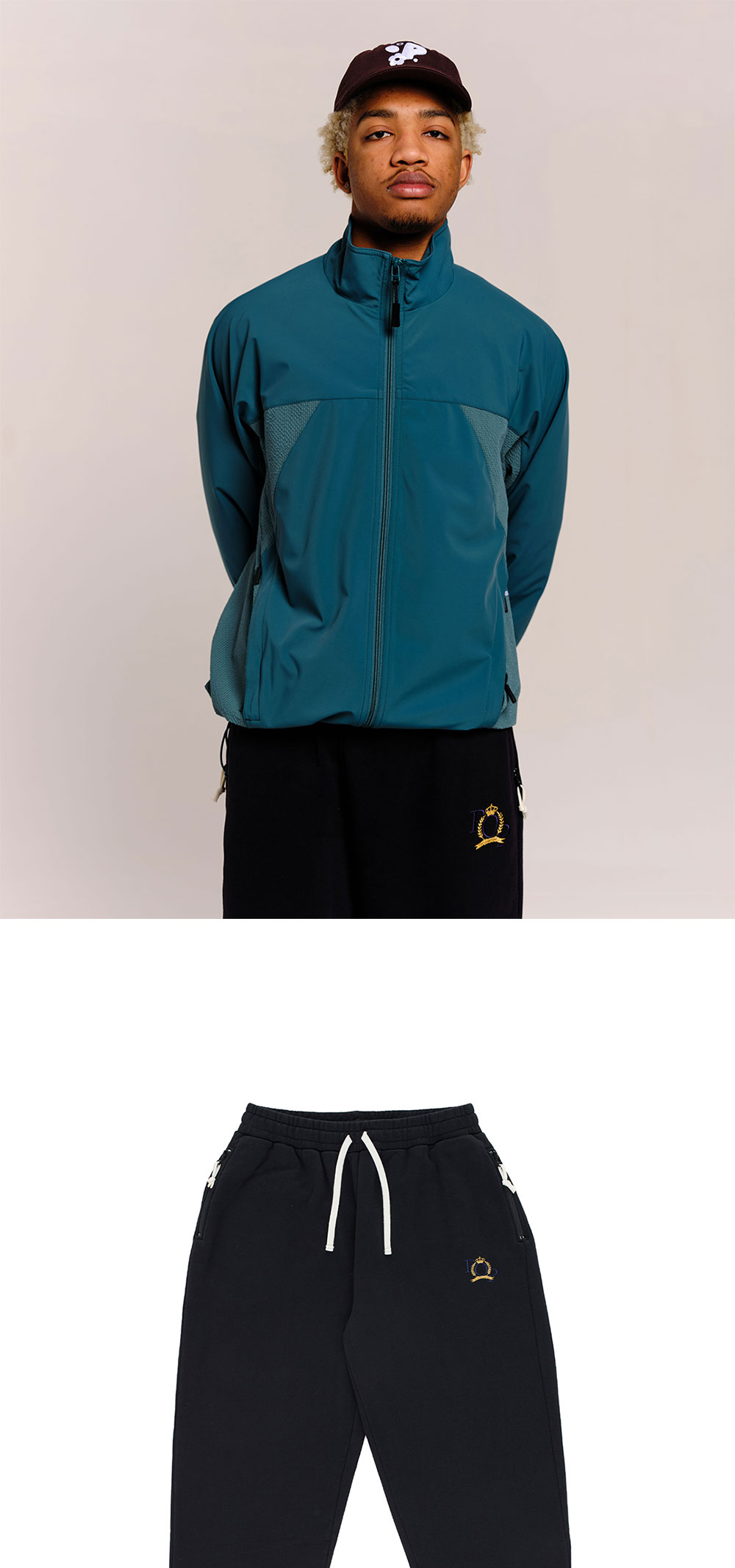 스트레이트 루즈핏으로 활용도 높은 팝 트레이딩 컴퍼니의 조깅 팬츠입니다. - 전면과 하부 측면에 로고 엠브로이더리 - 측면에 지퍼 포켓