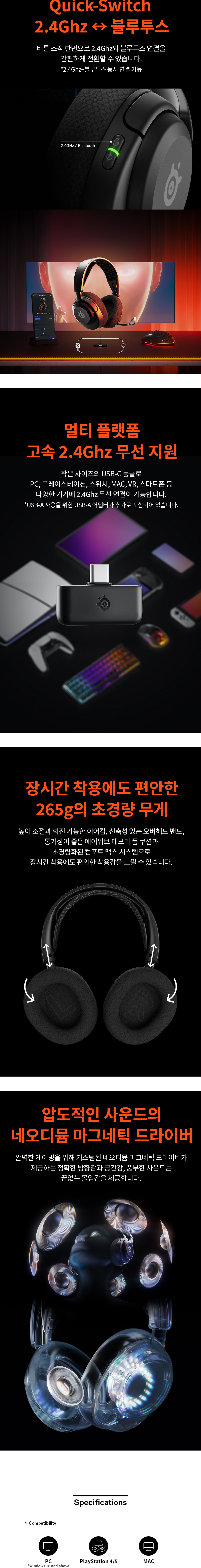 스틸시리즈 아크티스 노바 5 무선 게이밍 헤드셋